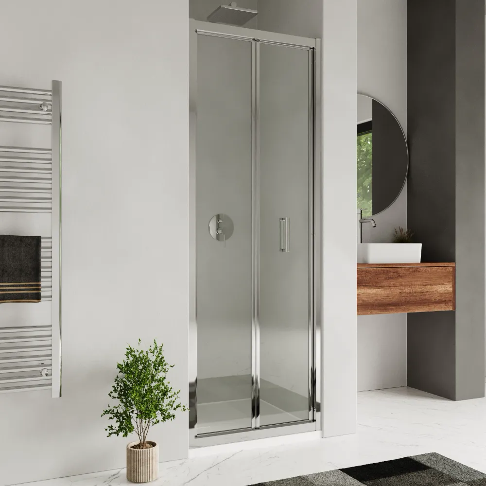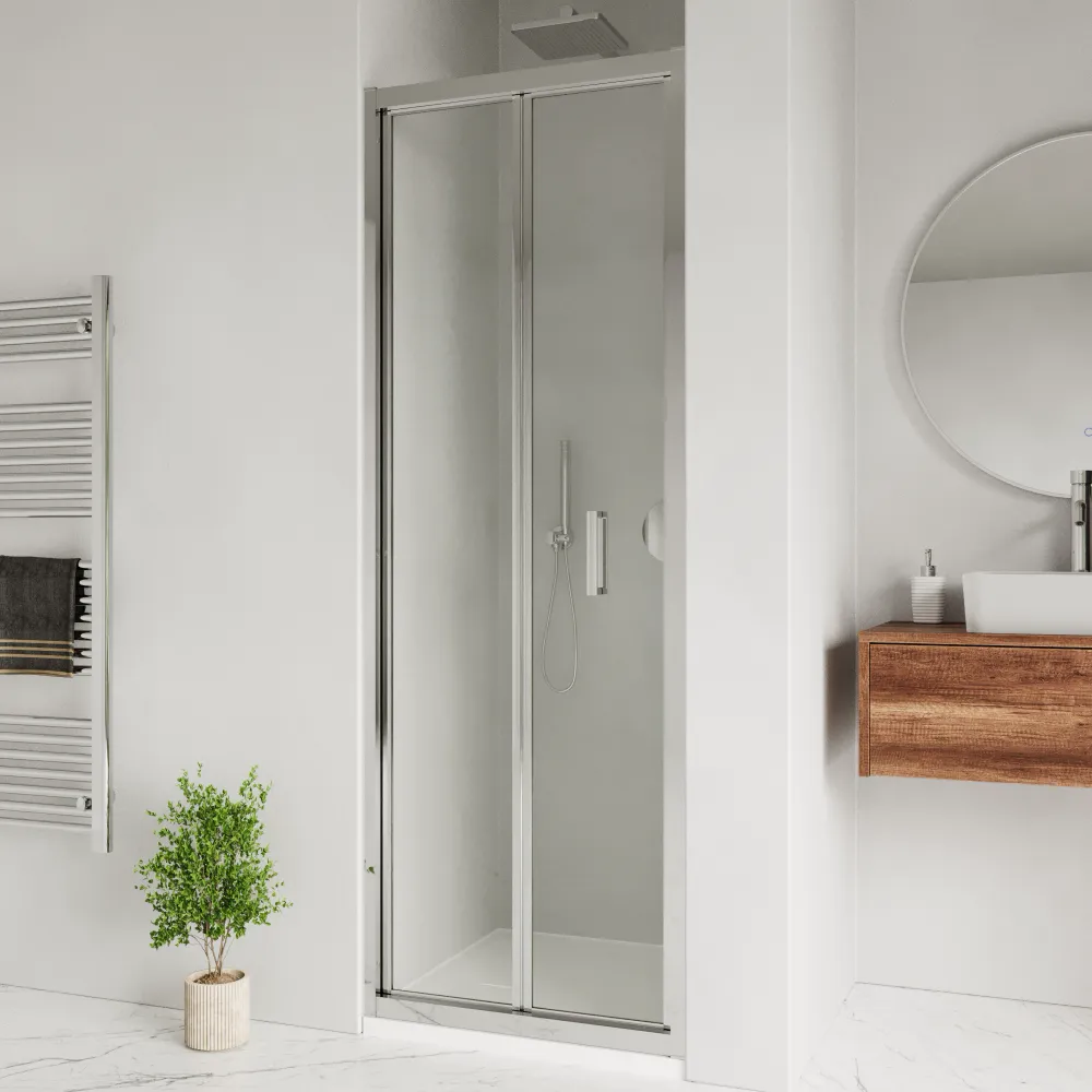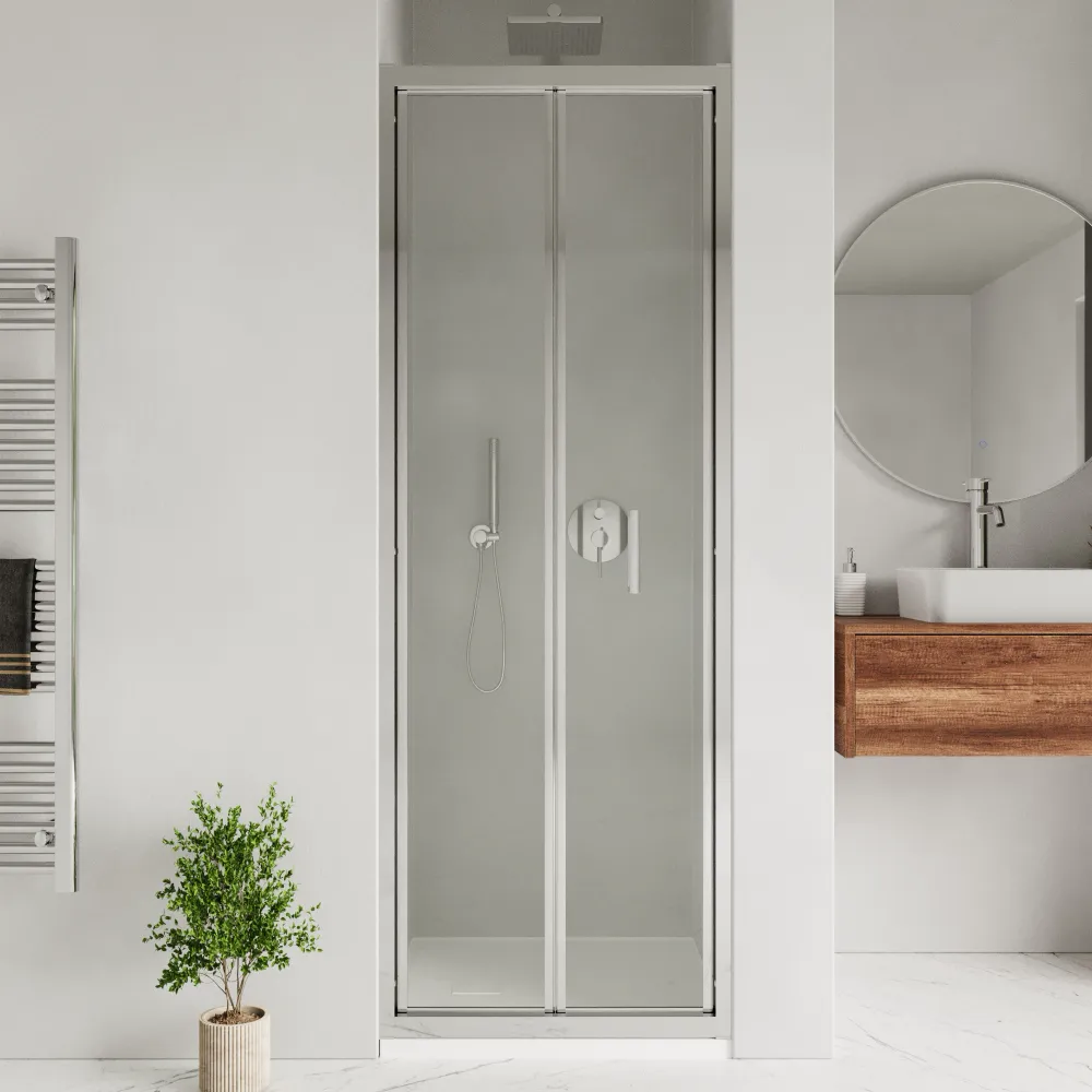 Rinnova la tua nicchia doccia con questa porta a libro da 70cm, progettata per unire eleganza, praticità e funzionalità salvaspazio. Il vetro trasparente garantisce luminosità e un ambiente aperto e arioso.