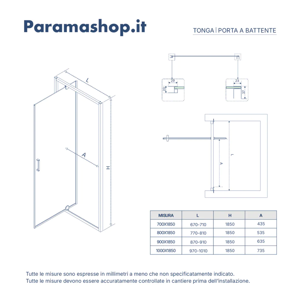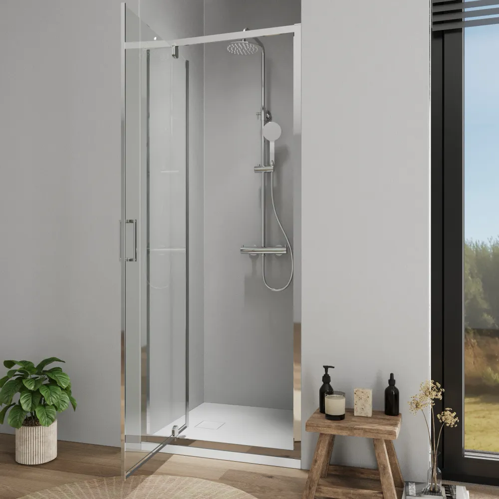 Nicchia doccia 90 cm apertura a battente profili cromati vetro 6mm trasparente h185 | Tonga