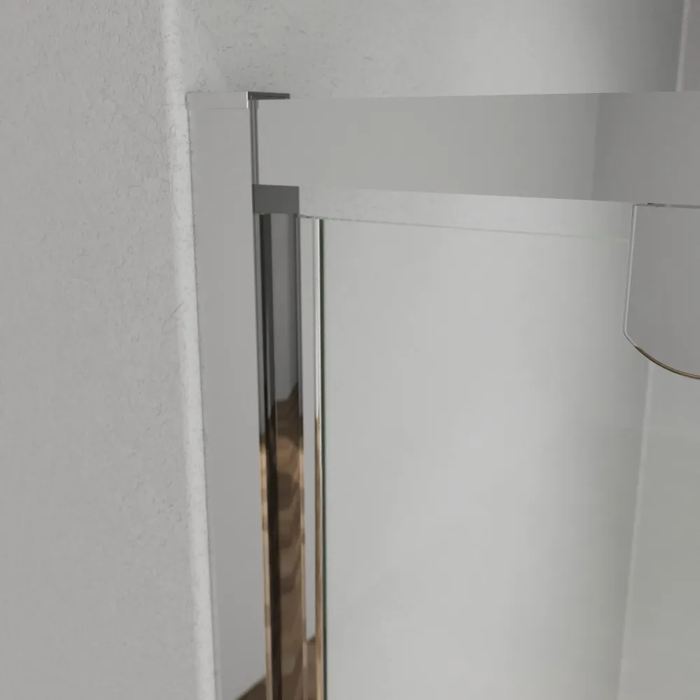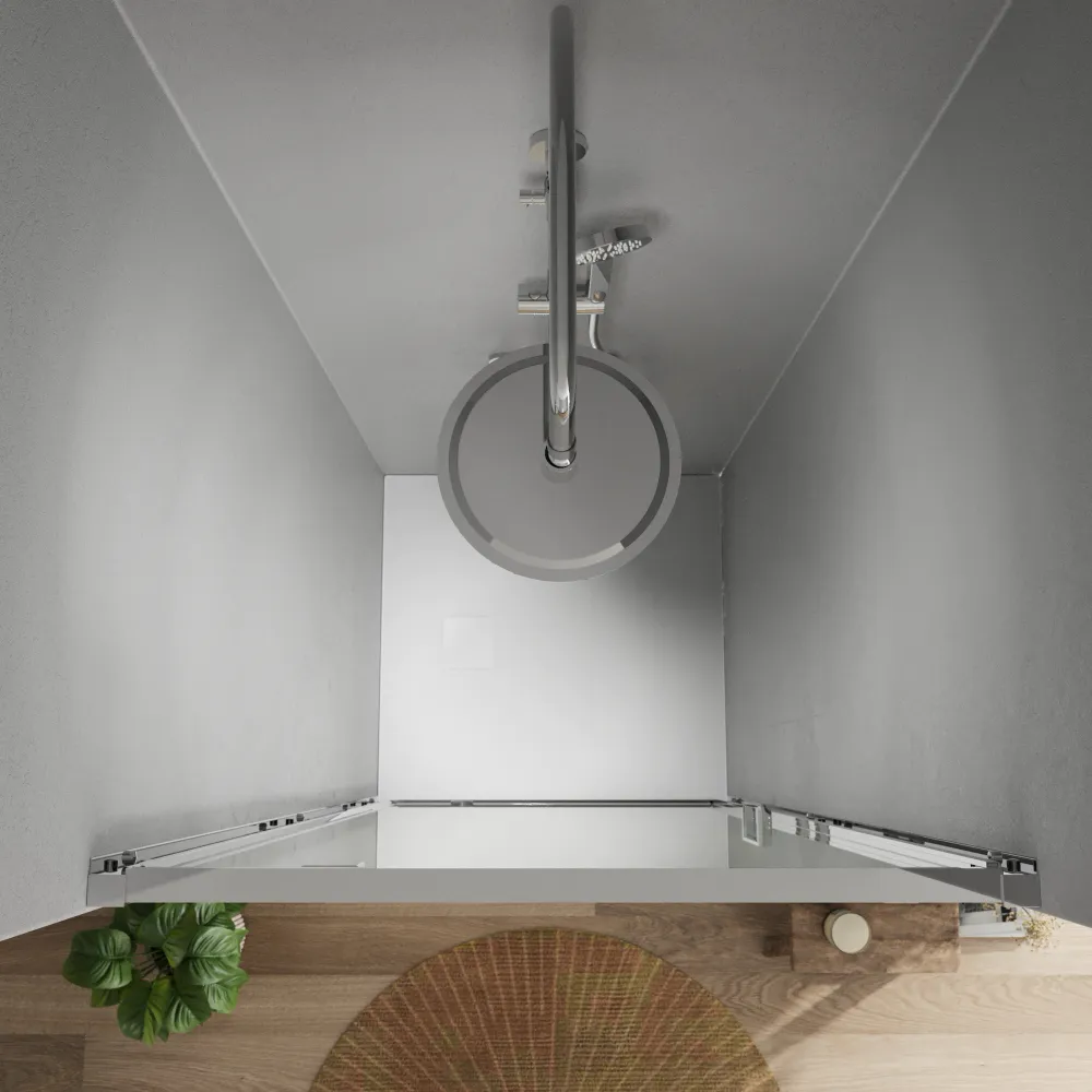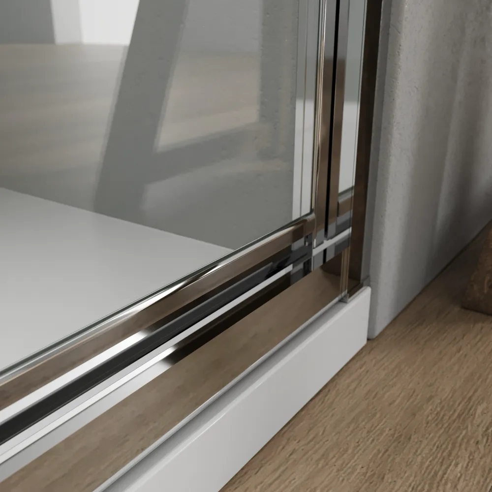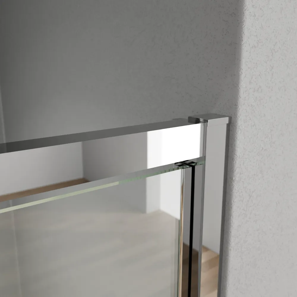 I profili cromati riflettono la luce con eleganza, mentre il vetro trasparente temperato da 6 mm, certificato secondo la norma EN12150-1, dona leggerezza e modernità all’ambiente bagno.