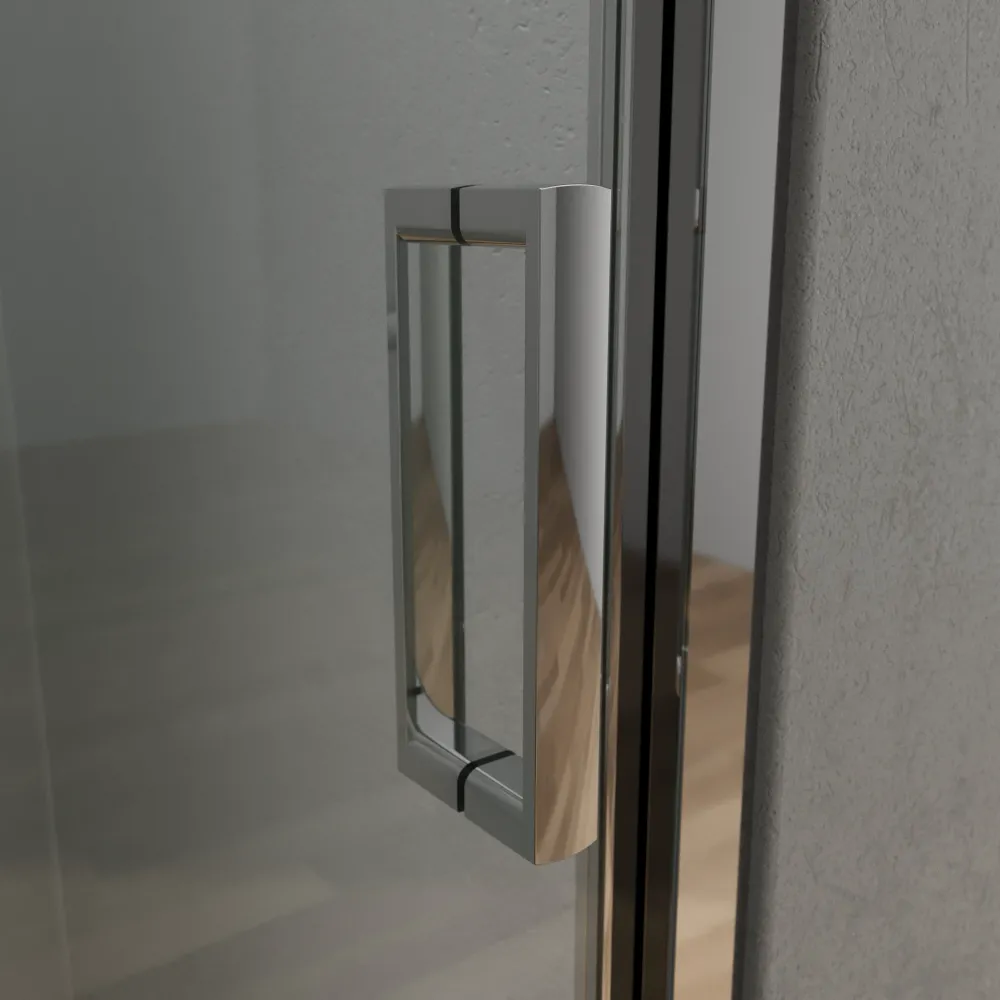 La maniglia cromata dal design squadrato e le guarnizioni magnetiche garantiscono una chiusura sicura e una perfetta tenuta all’acqua, completando l’equilibrio tra estetica e funzionalità.
