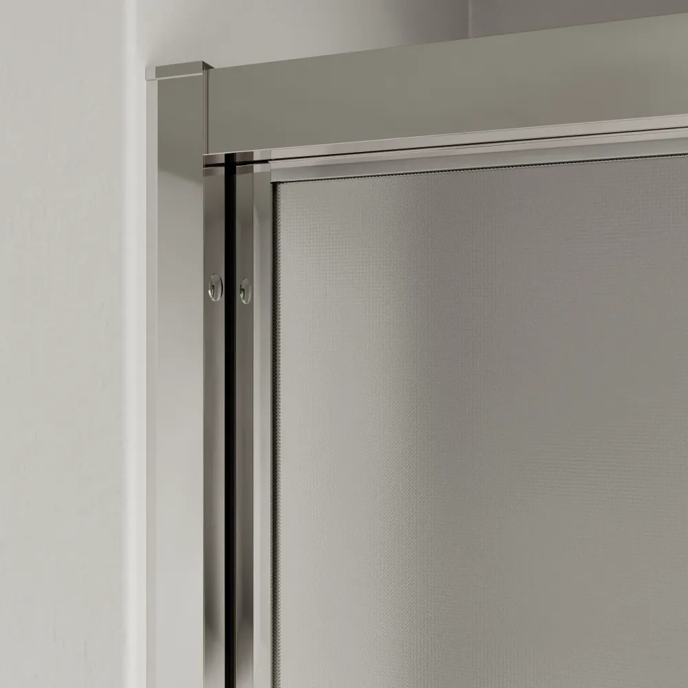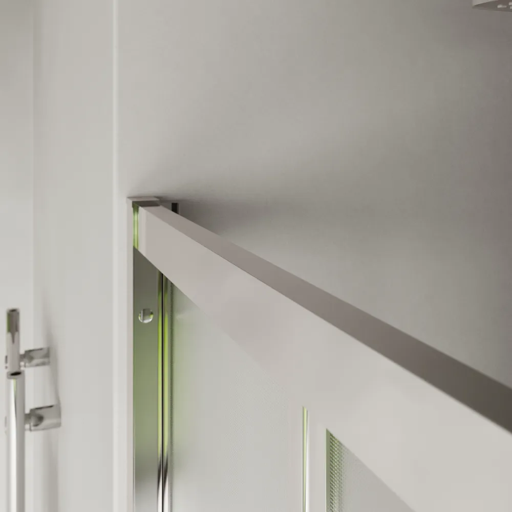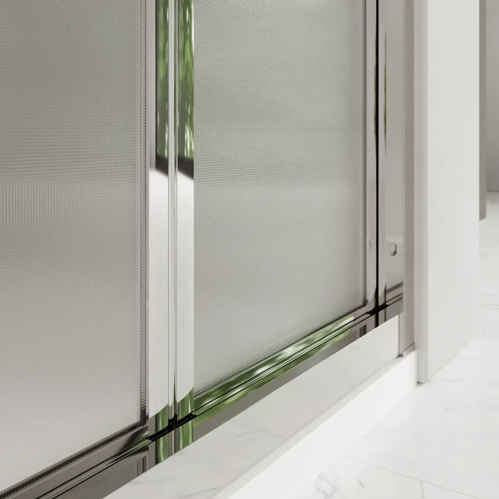 I profili cromati aggiungono un tocco di brillantezza e modernità, mentre il vetro stampato da 6 mm conferisce stile e privacy, mantenendo la luminosità dell’ambiente.