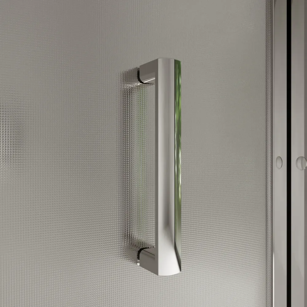 La maniglia in ABS cromata dal design squadrato e le guarnizioni magnetiche assicurano una chiusura stabile, ermetica e un’estetica impeccabile, completando la funzionalità della porta a libro.