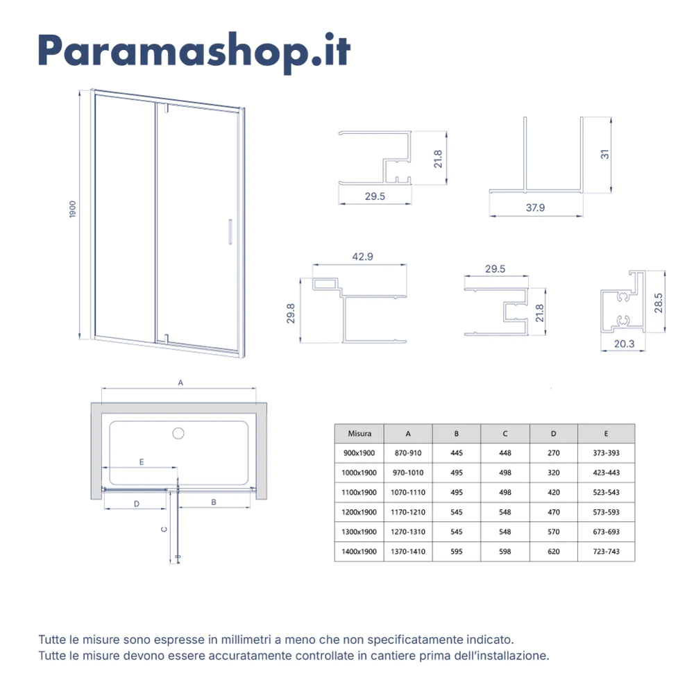 Con un’altezza di 190 cm e una tolleranza di regolazione di 2 cm, Lerici si adatta perfettamente a diversi spazi doccia, garantendo una chiusura precisa e una protezione ottimale dagli spruzzi. L’installazione reversibile consente di montarla con apertura sia a destra che a sinistra, offrendo massima versatilità.