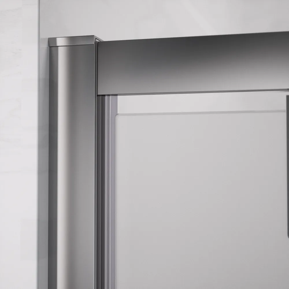 Il vetro temperato opaco da 6 mm, con trattamento Easy Clean, mantiene la superficie brillante più a lungo e riduce la formazione di calcare e residui. I profili in alluminio cromato lucido aggiungono un tocco di stile contemporaneo e garantiscono solidità e durata nel tempo.