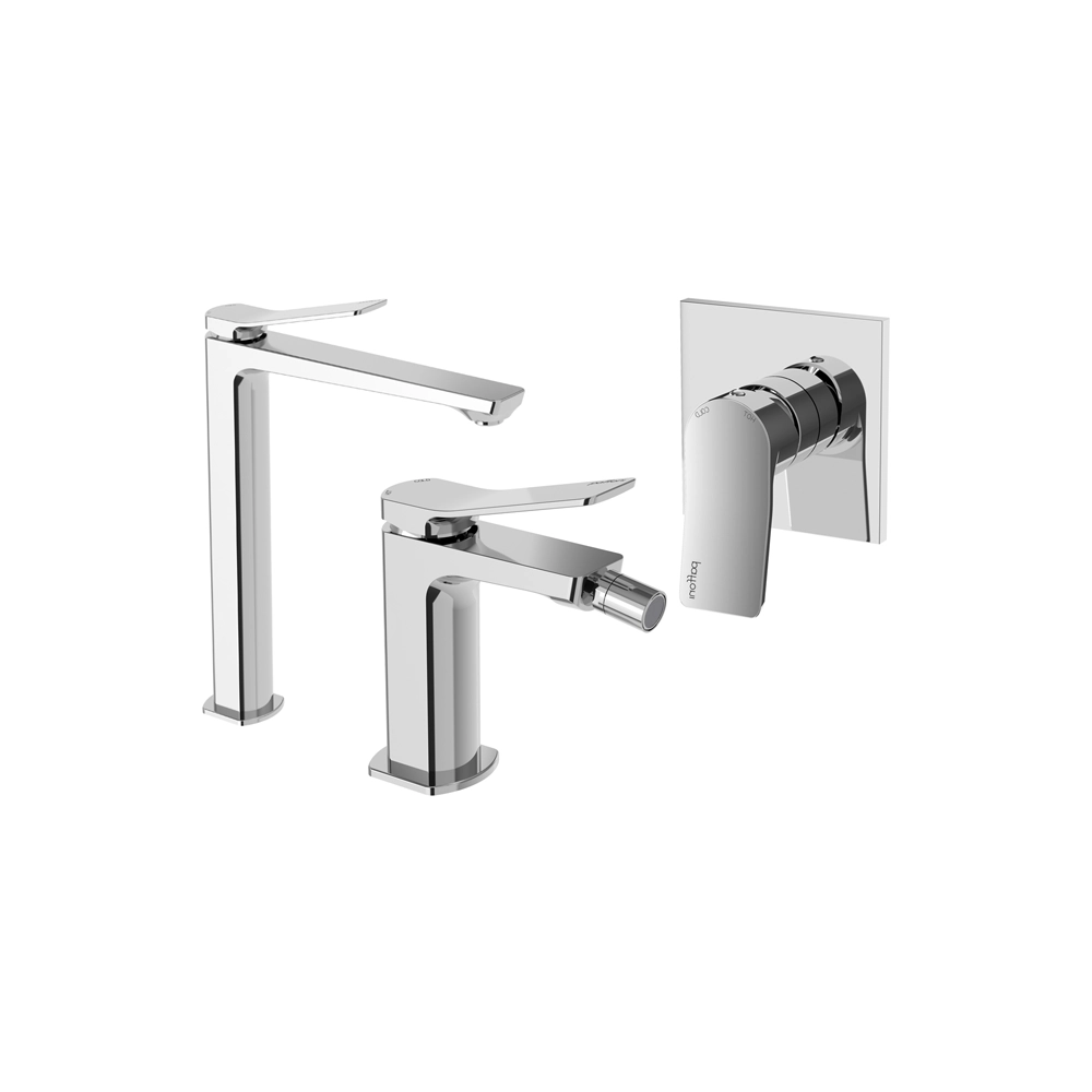 Paffoni set miscelatori lavabo alto, bidet senza scarico e incasso doccia 1 via cromato mod. Tilt