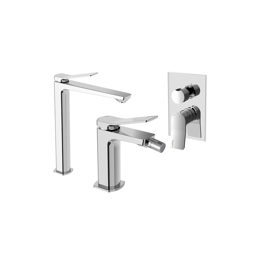 Paffoni set miscelatori lavabo alto, bidet senza scarico e incasso doccia deviatore 2 vie cromato mod. Tilt