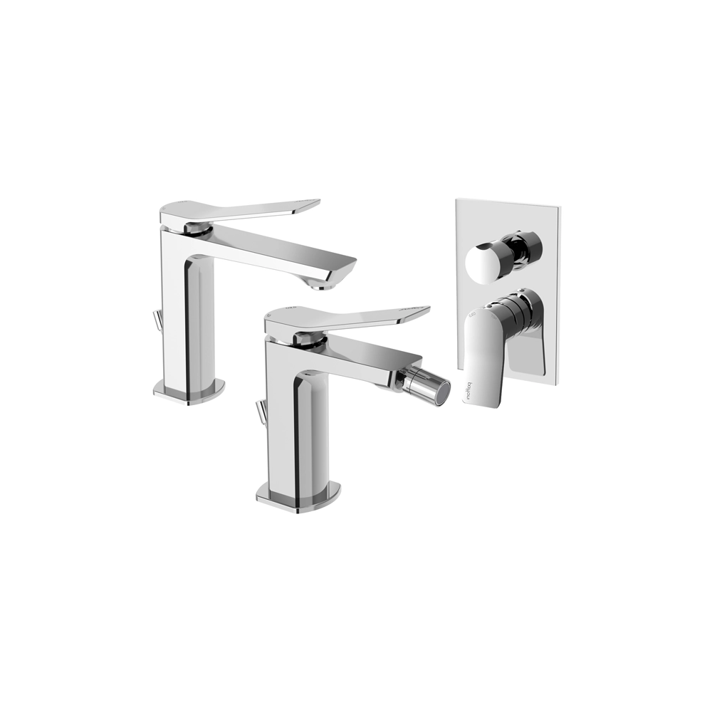 Paffoni set miscelatori lavabo, bidet scarico automatico e incasso doccia deviatore 2 vie cromato mod. Tilt