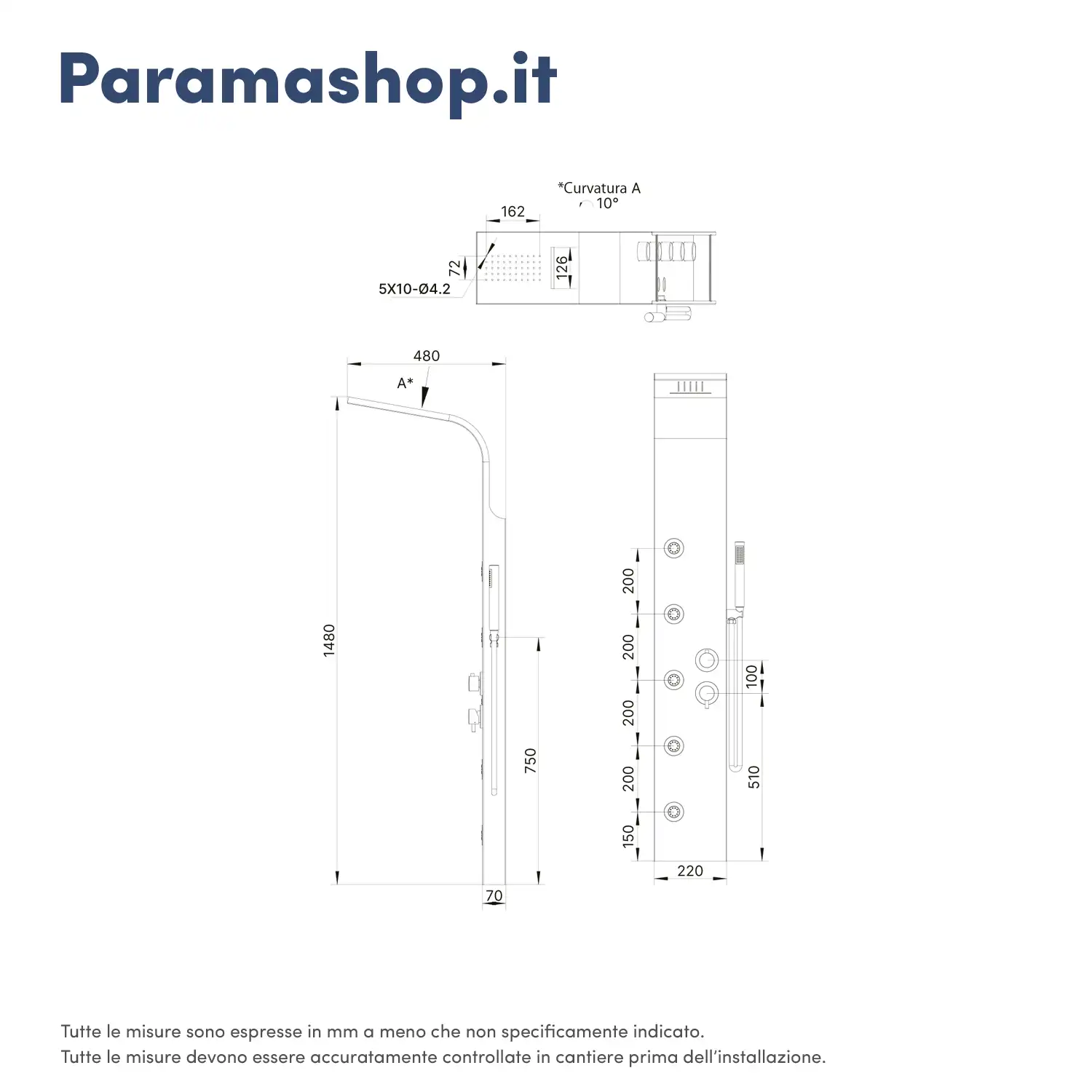 La struttura in acciaio cromato conferisce al pannello robustezza e resistenza nel tempo, mentre le sue dimensioni di 1480x200mm lo rendono ideale per la maggior parte dei box doccia.