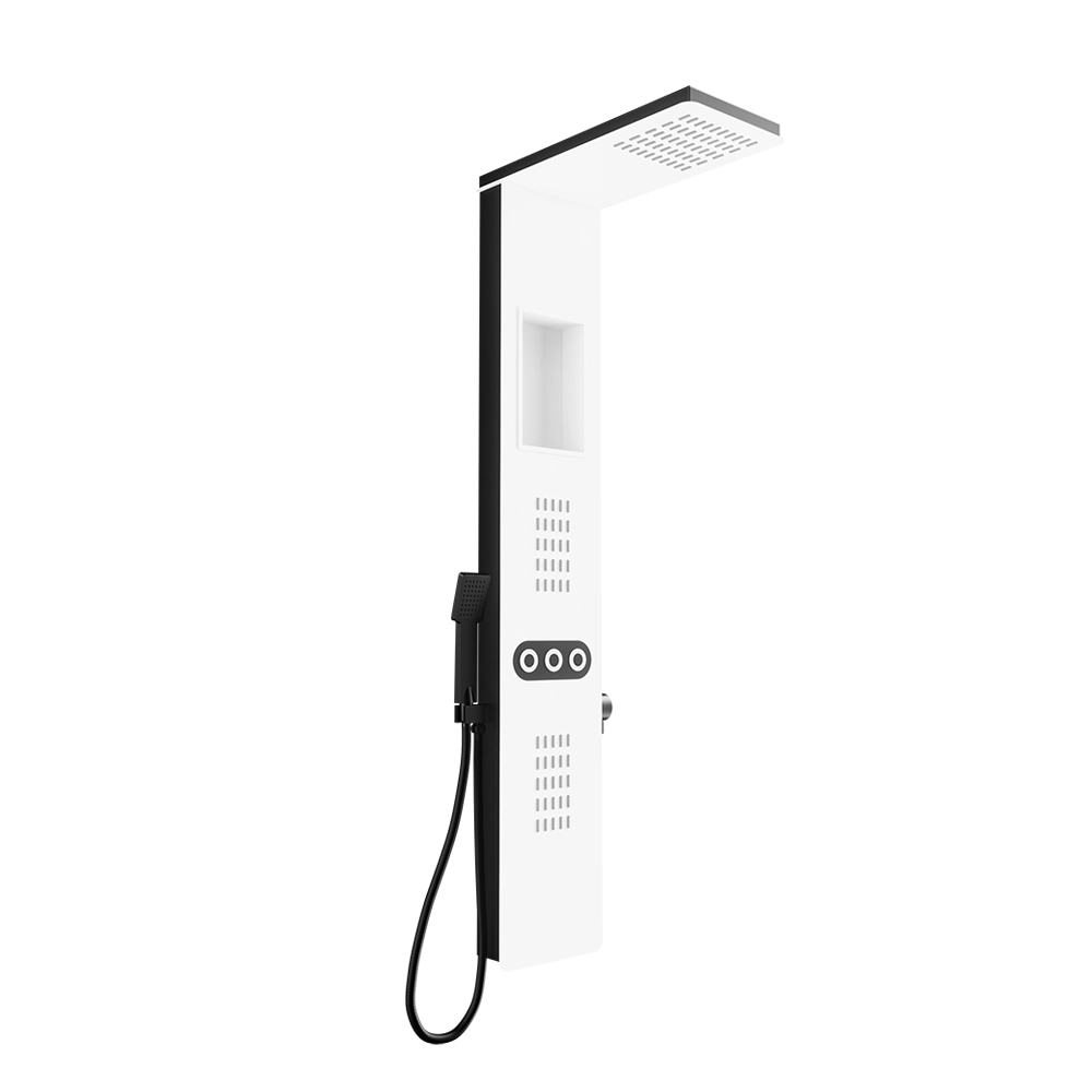 Pannello doccia in alluminio bianco e back nero con doccino, 3 funzioni | Ruacana