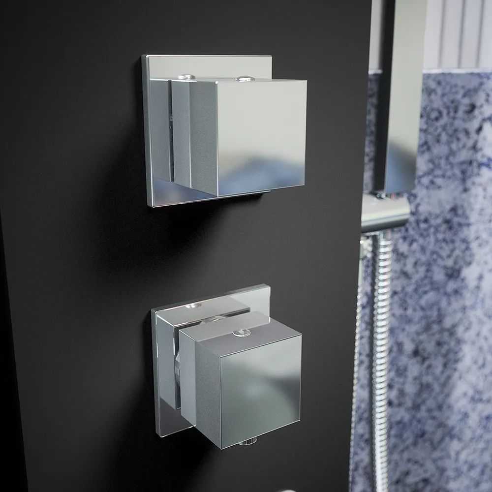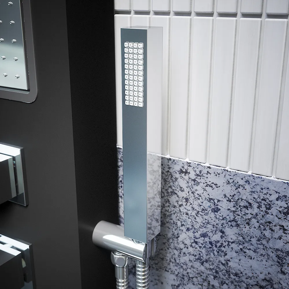 La sua struttura è composta interamente in alluminionero opaco. Soffione, doccino e getti idromassaggio sono in ABS con forma squadrata, mentre gli ugelli per il flusso d'acqua sono in silicone anti-calcare per una pulizia facile e veloce.