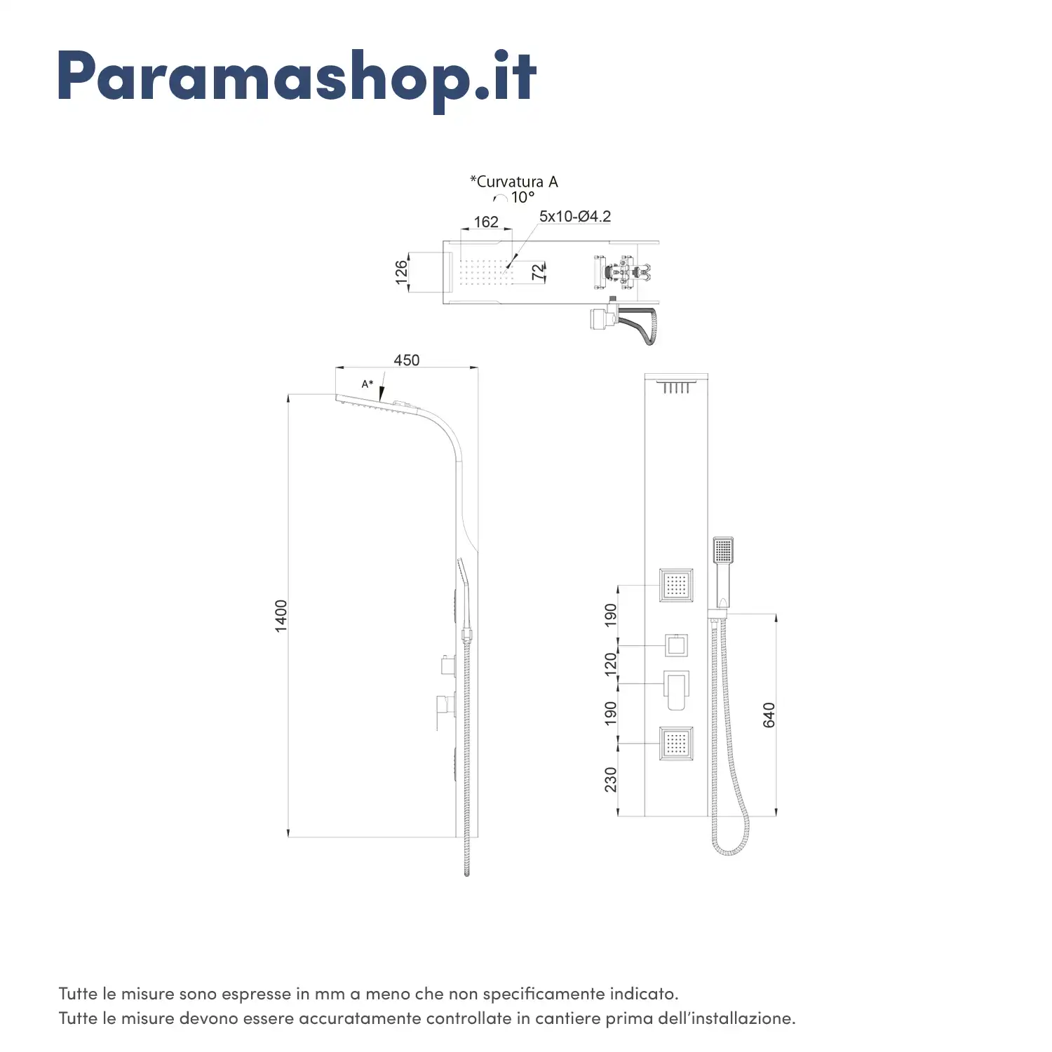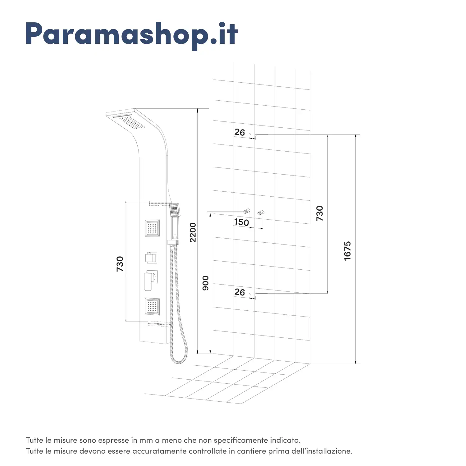 Linee morbide ed un design moderno caratterizzano questo pannello doccia rendendolo un accessorio pratico e completo per il tuo bagno. Grazie alle sue accurate dimensioni è adatto ad un utilizzo su piatti doccia di ogni dimensione.