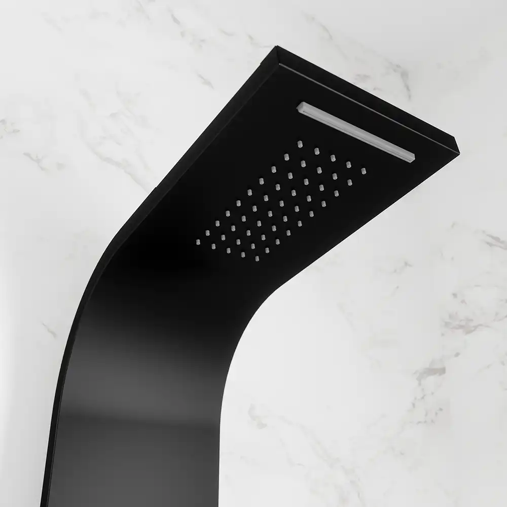 Pannello doccia in alluminio nero opaco con doccino, cascata e getti idromassaggio | Laja