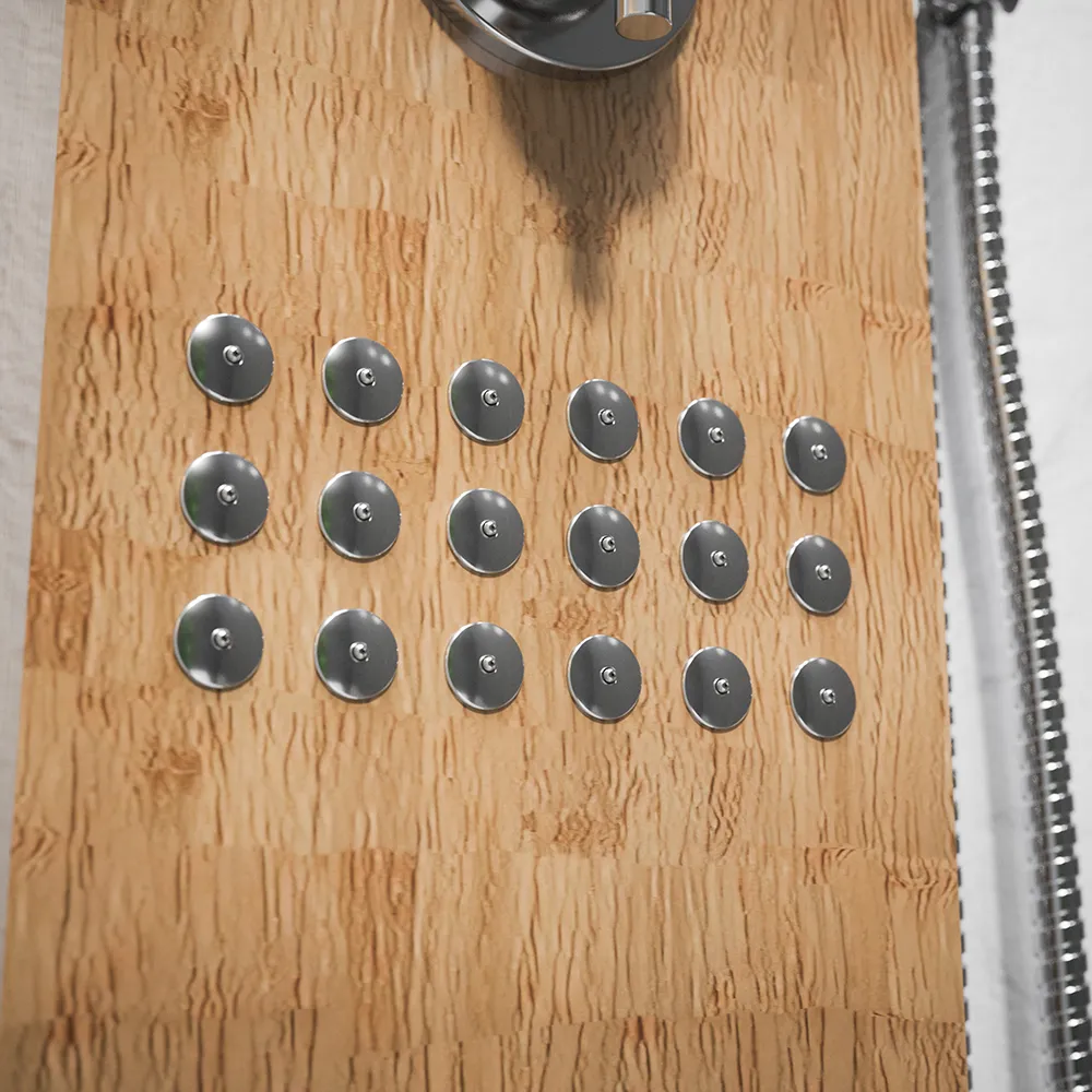 Trasforma il tuo bagno in un'oasi di relax e benessere con il Pannello Doccia Take, un connubio perfetto tra la naturale eleganza del bamboo e l'innovazione tecnologica. Questo pannello doccia offre un'esperienza sensoriale unica, combinando funzionalità avanzate e un design eco-friendly per soddisfare ogni tua esigenza.