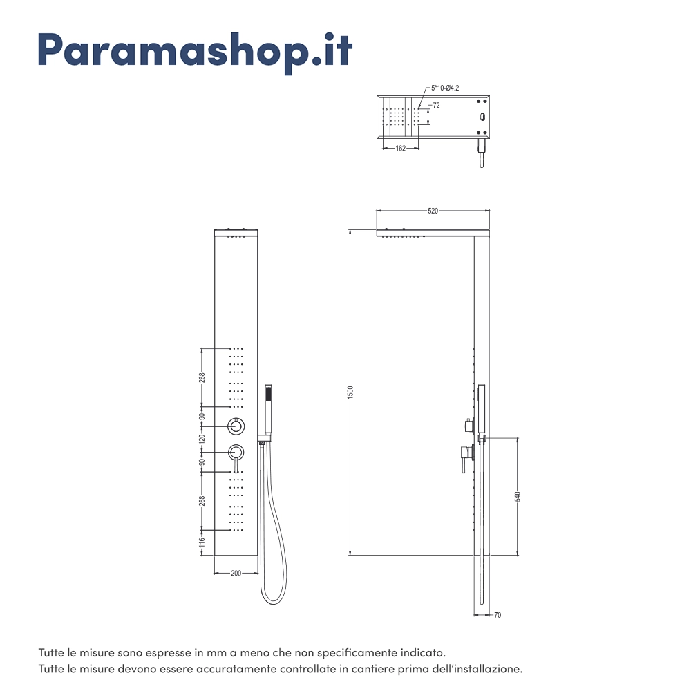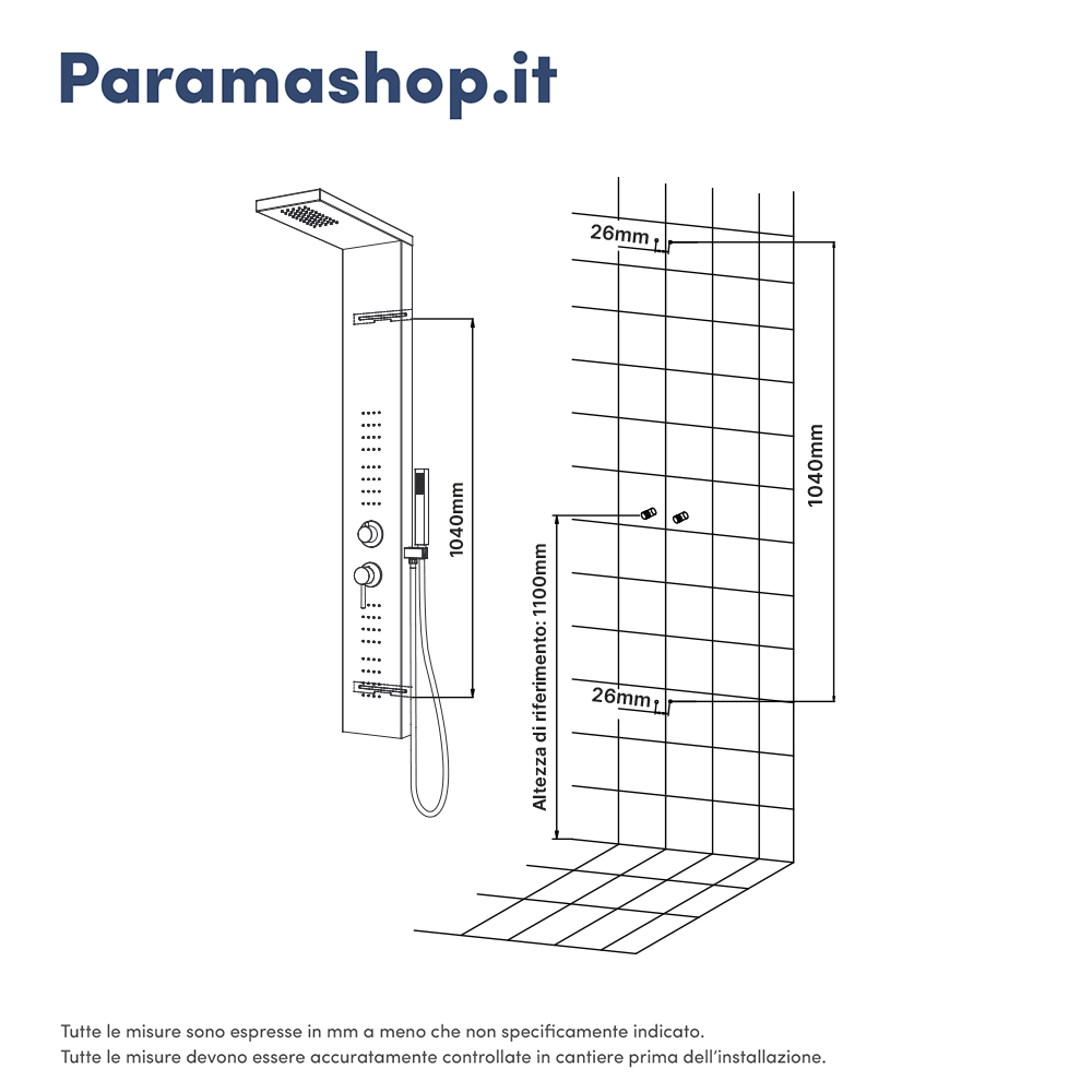La sua struttura è composta interamente in alluminio. Soffione, doccino e getti idromassaggio sono in ABS con forma squadrata, mentre gli ugelli per il flusso d'acqua sono in silicone anti-calcare garantendo così una pulizia facile e veloce.