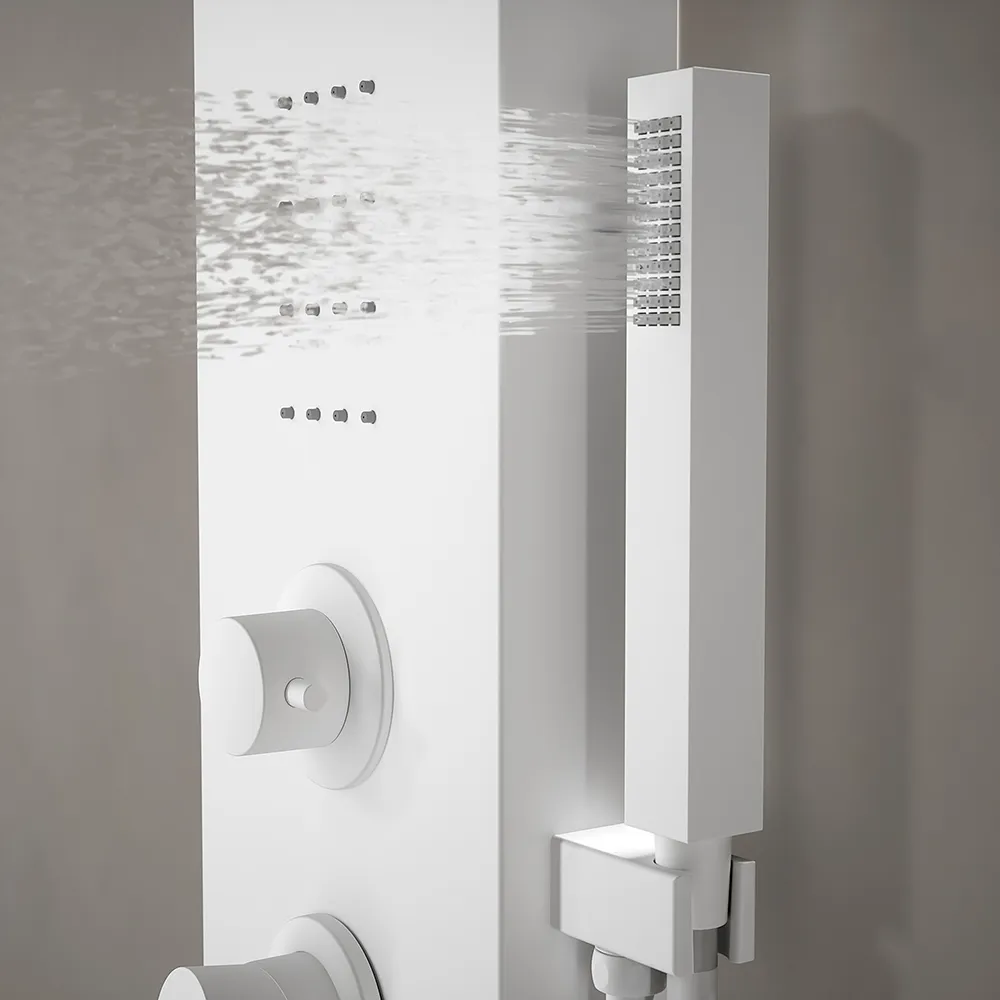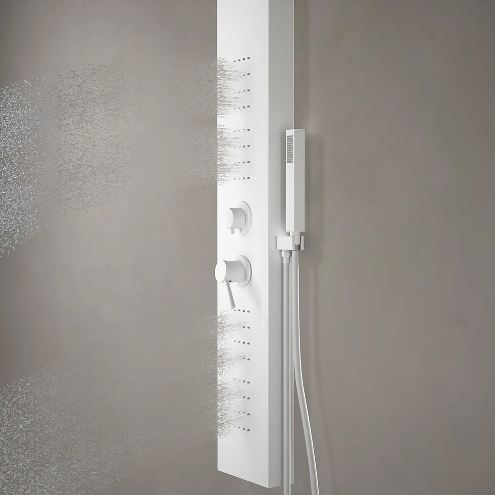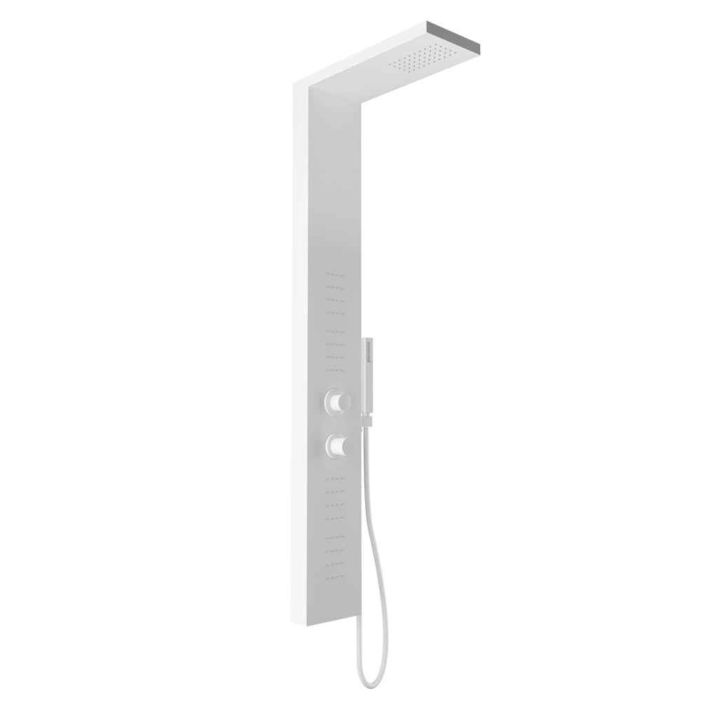 Pannello doccia squadrato in alluminio bianco opaco con doccino, 4 getti e 3 funzioni | Bormio