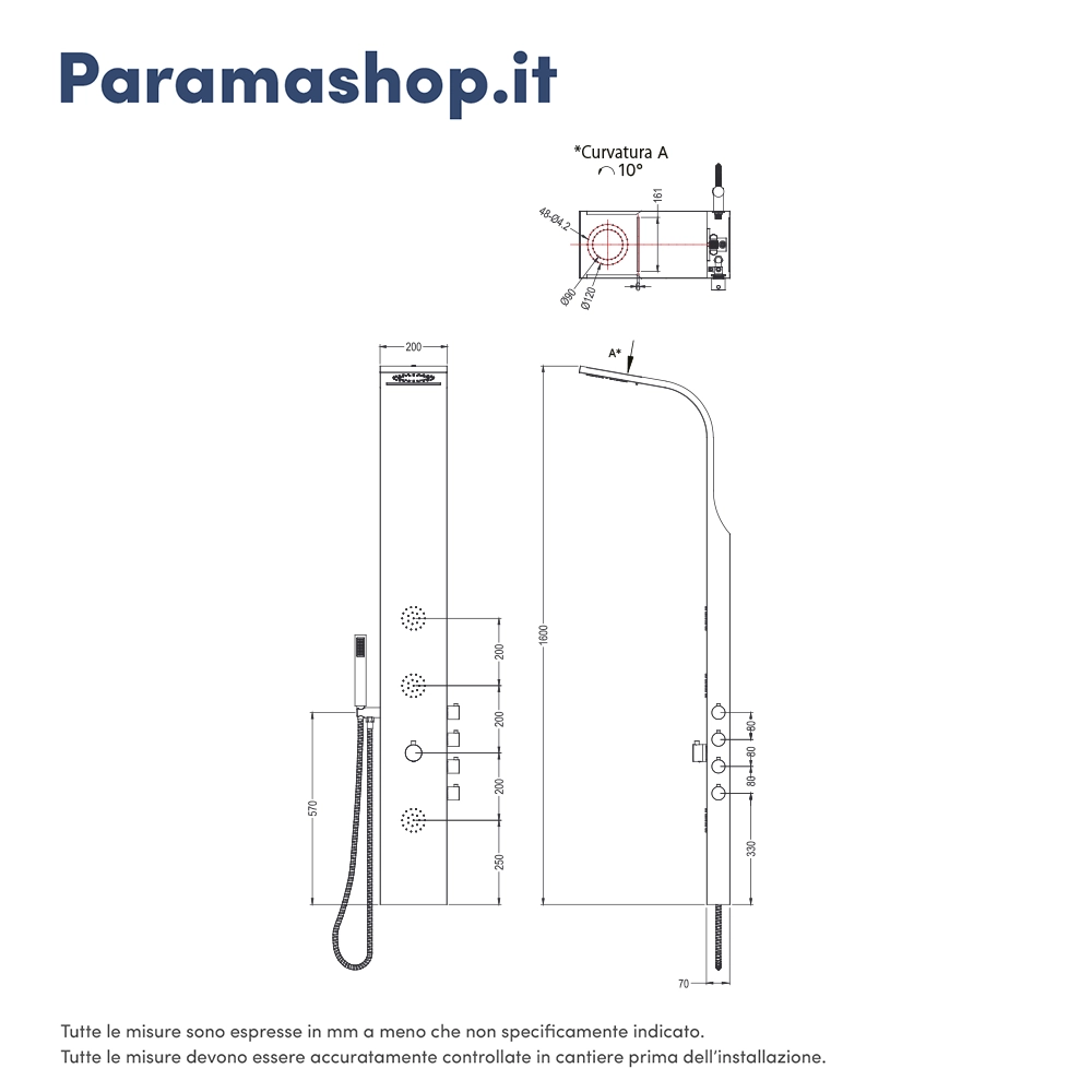 La struttura in acciaio inox conferisce al pannello robustezza e resistenza nel tempo, mentre le sue dimensioni di 1600x200mm lo rendono ideale per la maggior parte dei box doccia.