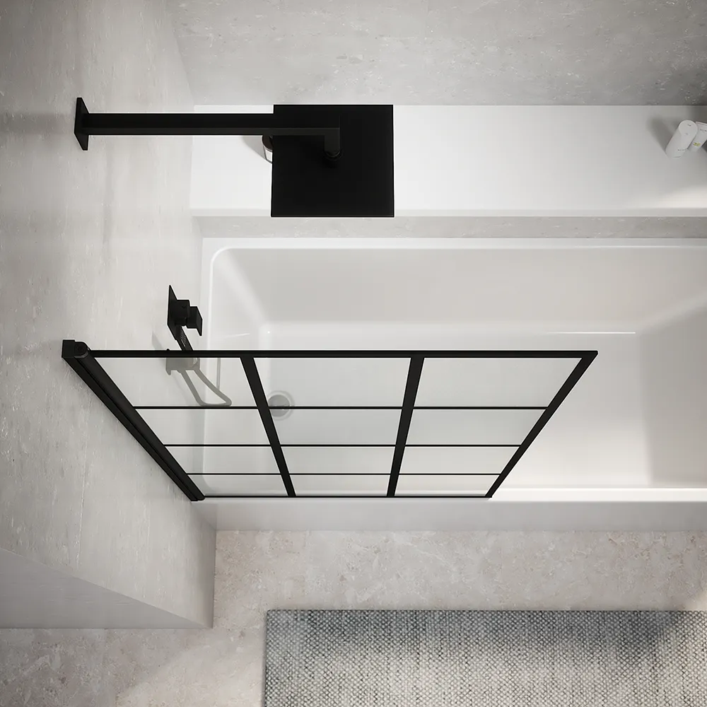 Gyda è la parete sopravasca al servizio del tuo ambiente bagno che incarna un'eleganza senza tempo. Con una larghezza di 80cm ed un'altezza di 140cm, si abbina perfettamente alla vasca, consentendoti di fare la doccia con una protezione ottimale dalle fuoriuscite di acqua. Questo sopravasca è realizzato con vetro temperato stampato nero da 6 mm di spessore.