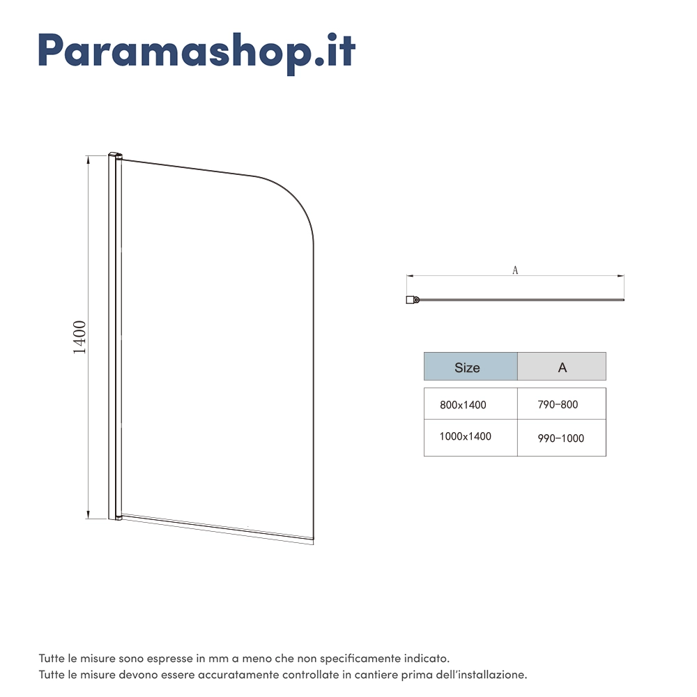 Macao è la parete sopravasca dalla forma arrotondata che rappresenta l'aggiunta impeccabile per il tuo bagno, unendo funzionalità e stile. Con una larghezza di 80cm ed un'altezza di 140cm, si integra perfettamente alla tua vasca da bagno, consentendo di poterla utilizzare anche per fare la doccia con una protezione completa dalla fuoriuscita di acqua. Realizzata con vetro temperato trasparente da 6 mm di spessore, presenta inoltre forme stondate, che apportano un tocco di stile ed eleganza..