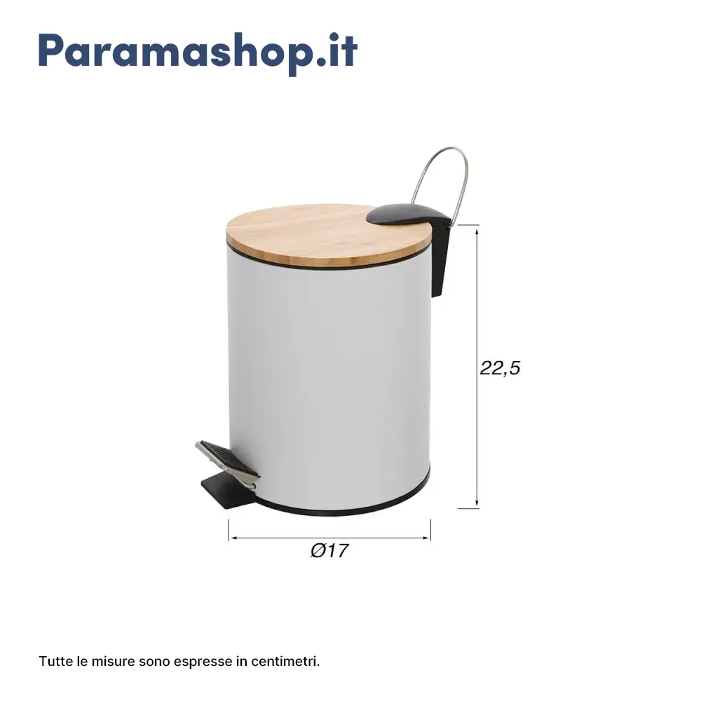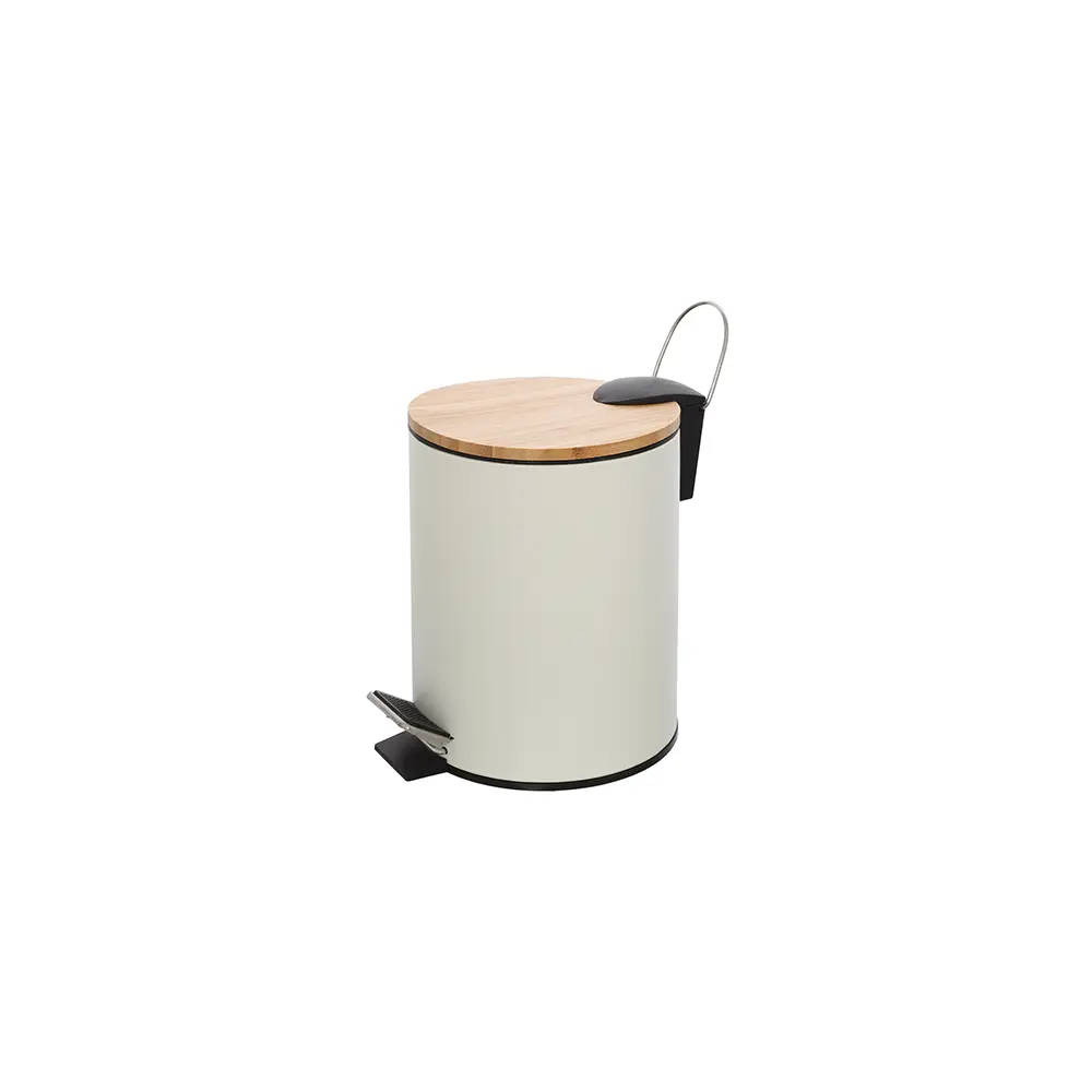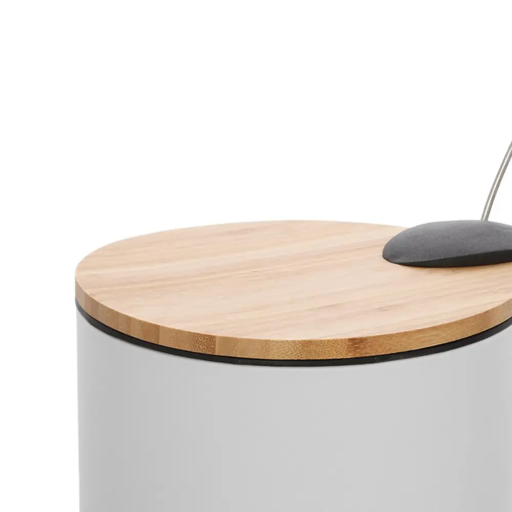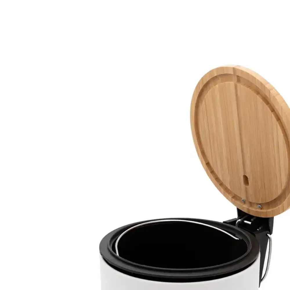 Pattumiera a pedale 3L acciaio bianco e bambu | Haiti