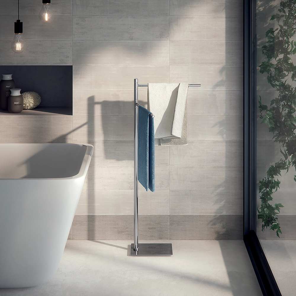 Trilly è la piantana portasalviette che fornisce tutta la praticità di utilizzo di un accessorio a terra, dando inoltre forma e raffinatezza al bagno con le sue linee pulite ed eleganti. I due bracci orientabili forniscono un'ottimale capacità per disporre gli asciugamani, mantenendoli sempre in ordine ed a portata di mano. Non necessitando, poi, di installazione a muro, questa piantana è perfetta per chi non volesse praticare fori su muri o piastrelle.