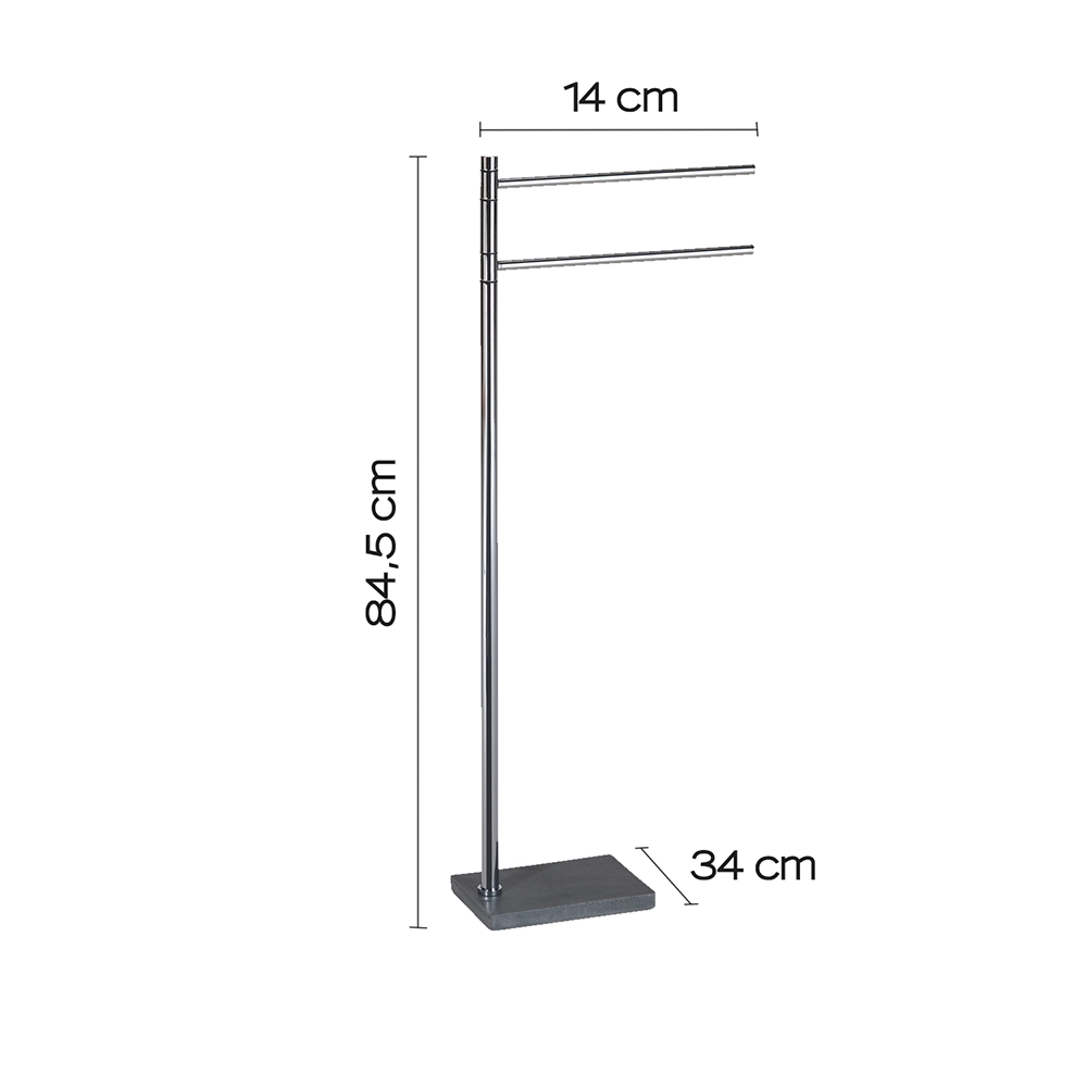 Trilly è la piantana portasalviette che fornisce tutta la praticità di utilizzo di un accessorio a terra, dando inoltre forma e raffinatezza al bagno con le sue linee pulite ed eleganti. I due bracci orientabili forniscono un'ottimale capacità per disporre gli asciugamani, mantenendoli sempre in ordine ed a portata di mano. Non necessitando, poi, di installazione a muro, questa piantana è perfetta per chi non volesse praticare fori su muri o piastrelle.