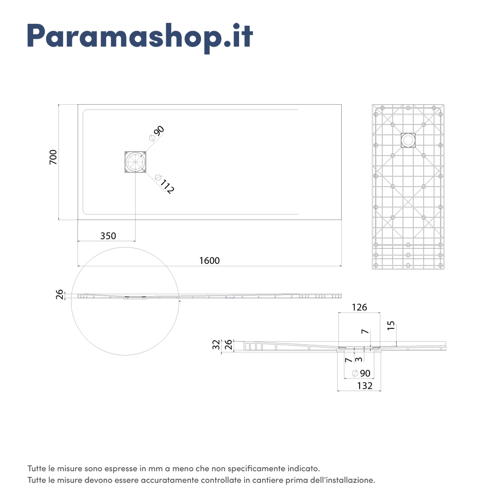 Si prega di notare che la piletta di scarico non è inclusa nella confezione del prodotto ma è acquistabile separatamente nell'apposita sezione dedicata (Cod. Prodotto: AI01DRA002).