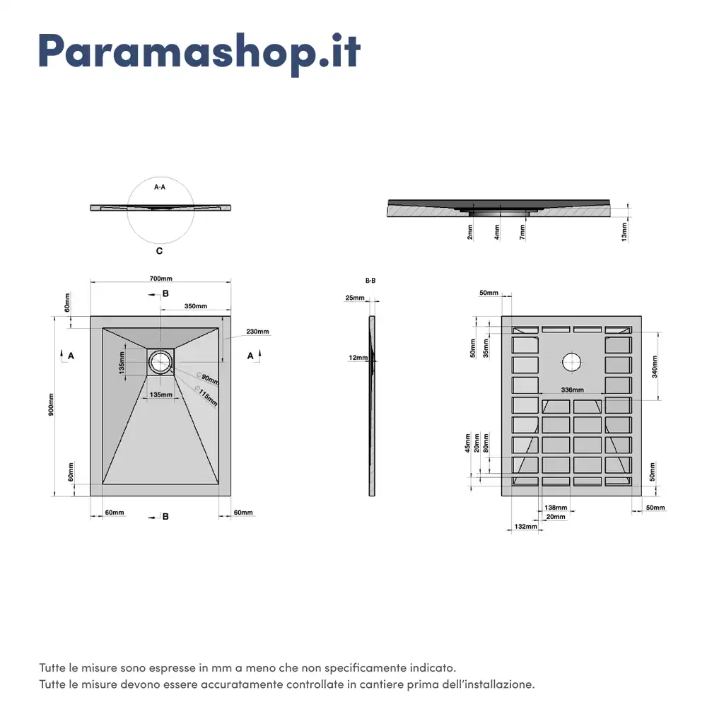 La piletta di scarico non è inclusa ma è acquistabile separatamente sul nostro store (cod. art. AI01DRA001).