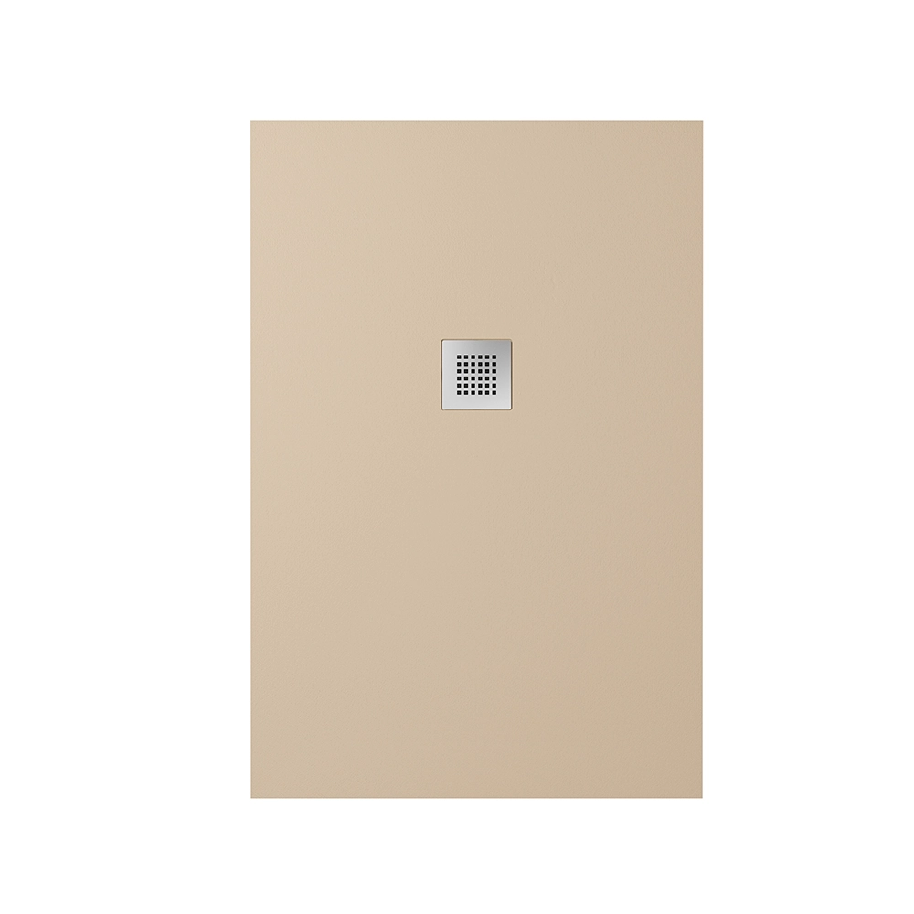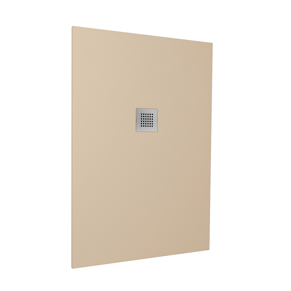 La superficie del piatto doccia è rivestita con uno strato di gel coat e lavorata per ottenere un effetto pietra, rendendolo antiscivolo, antibatterico e altamente resistente. La griglia copri piletta, inclusa, presenta un design che si integra perfettamente con l'aspetto complessivo del piatto doccia, offrendo una finitura coerente e curata.