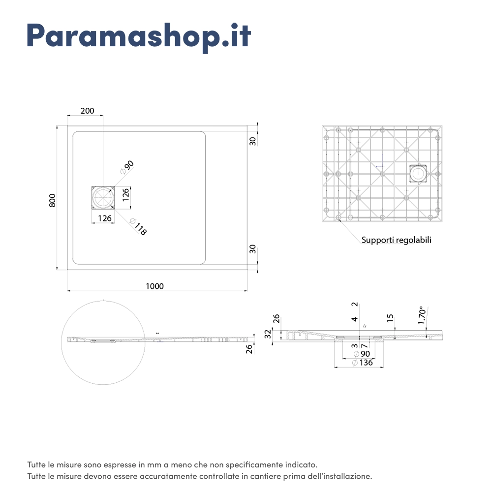 Si prega di notare che la piletta di scarico non è inclusa nella confezione del prodotto ma è acquistabile separatamente nell'apposita sezione dedicata (Cod. Prodotto: AI01DRA002).