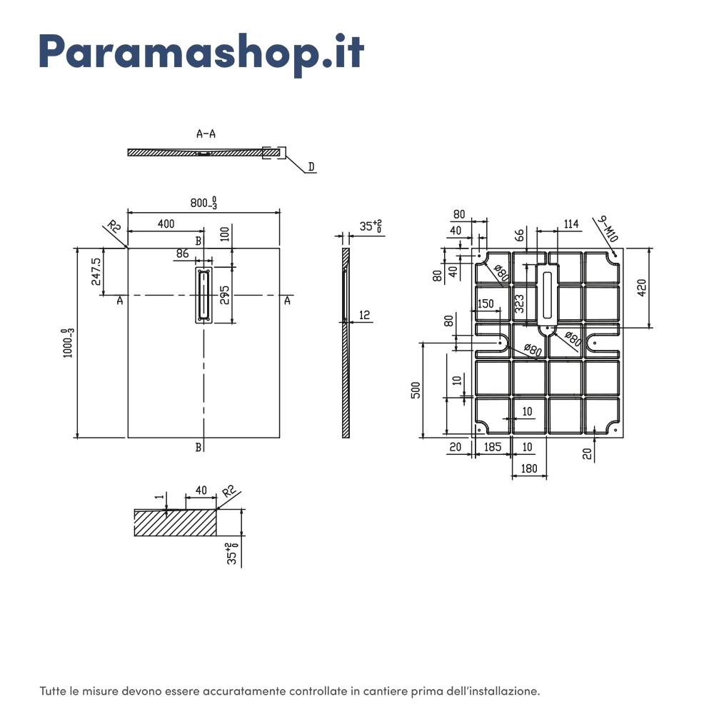 Si prega di notare che la piletta di scarico non è inclusa nella confezione del prodotto ma è acquistabile separatamente nell'apposita sezione dedicata (Cod. Prodotto: AI01DRA004).