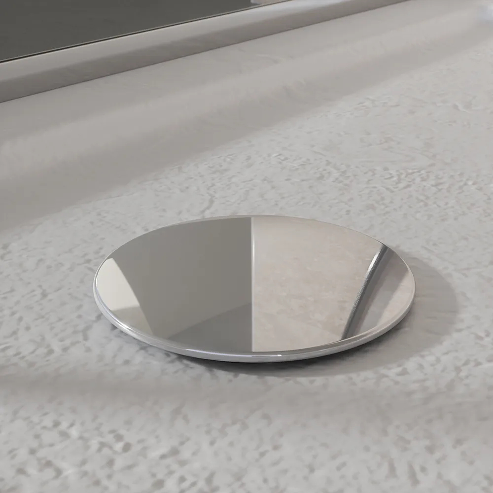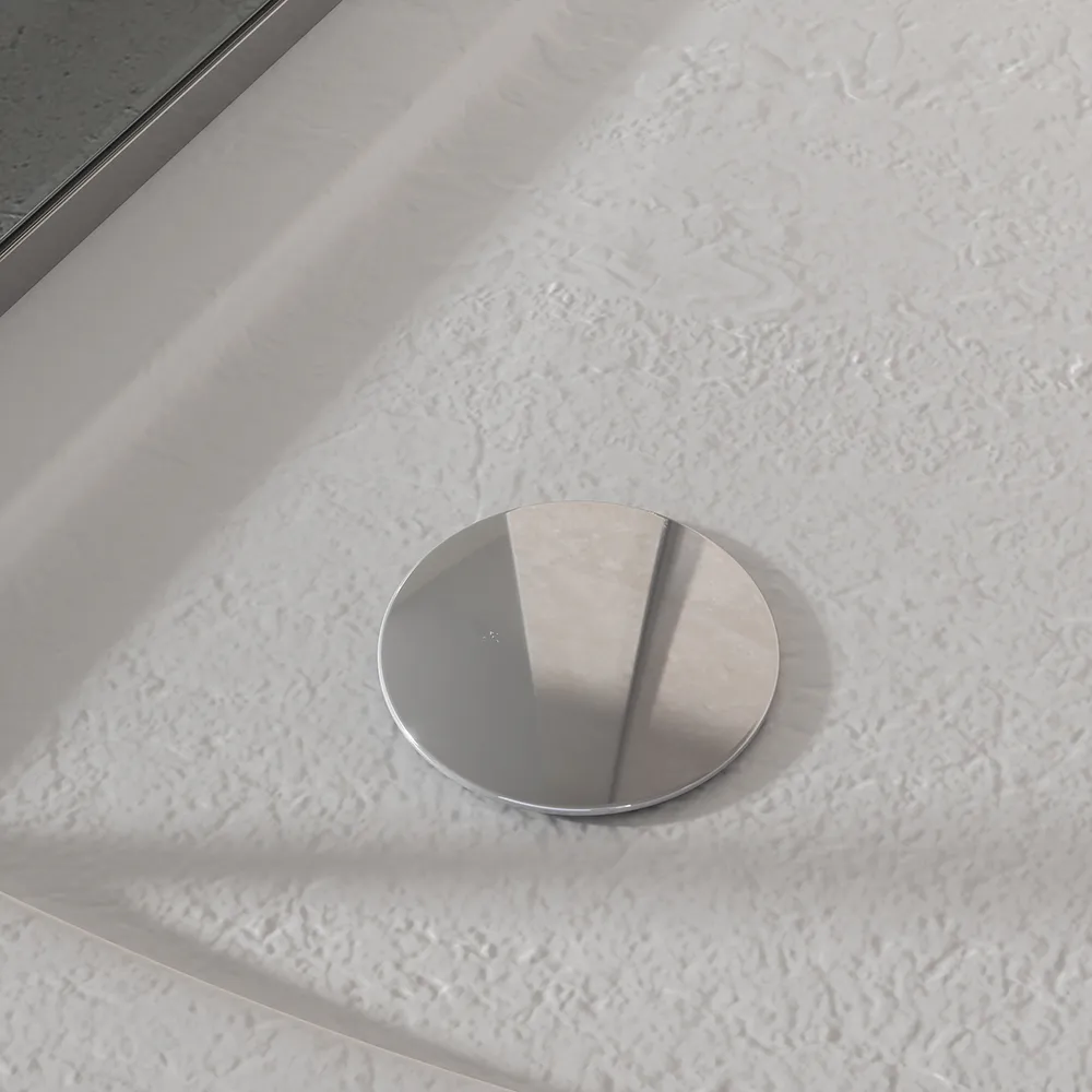 Installabile in appoggio, foro di scarico da 90mm posizionato ad angolo, non riducibile.