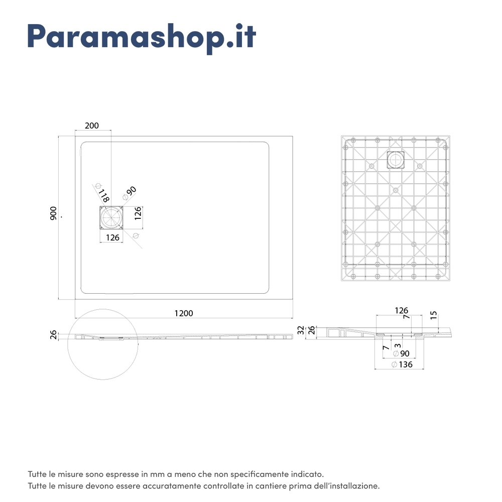 Si prega di notare che la piletta di scarico non è inclusa nella confezione del prodotto ma è acquistabile separatamente nell'apposita sezione dedicata (Cod. Prodotto: AI01DRA002).