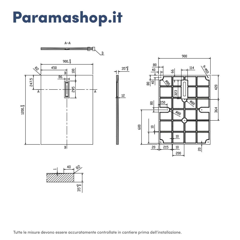 Si prega di notare che la piletta di scarico non è inclusa nella confezione del prodotto ma è acquistabile separatamente nell'apposita sezione dedicata (Cod. Prodotto: AI01DRA004).