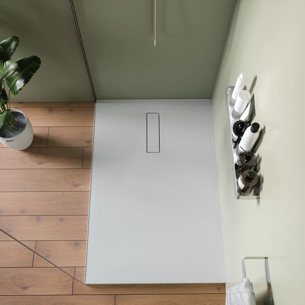 Il piatto doccia Merlera è tagliabile, il che permette di adattarlo facilmente a qualsiasi dimensione e forma. Inoltre, offre due opzioni di installazione: in appoggio o filo pavimento, per una personalizzazione totale del design del tuo bagno. L'installazione filo pavimento crea un effetto elegante e minimalista, eliminando il gradino tra il piatto e il pavimento, mentre l'installazione in appoggio è altrettanto pratica e funzionale, ideale per chi cerca una soluzione più tradizionale.