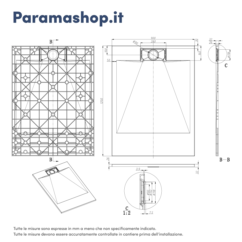 La piletta di scarico non è inclusa nel prezzo ma potrai acquistarla separatamente (codice prodotto: AI01DRA001).