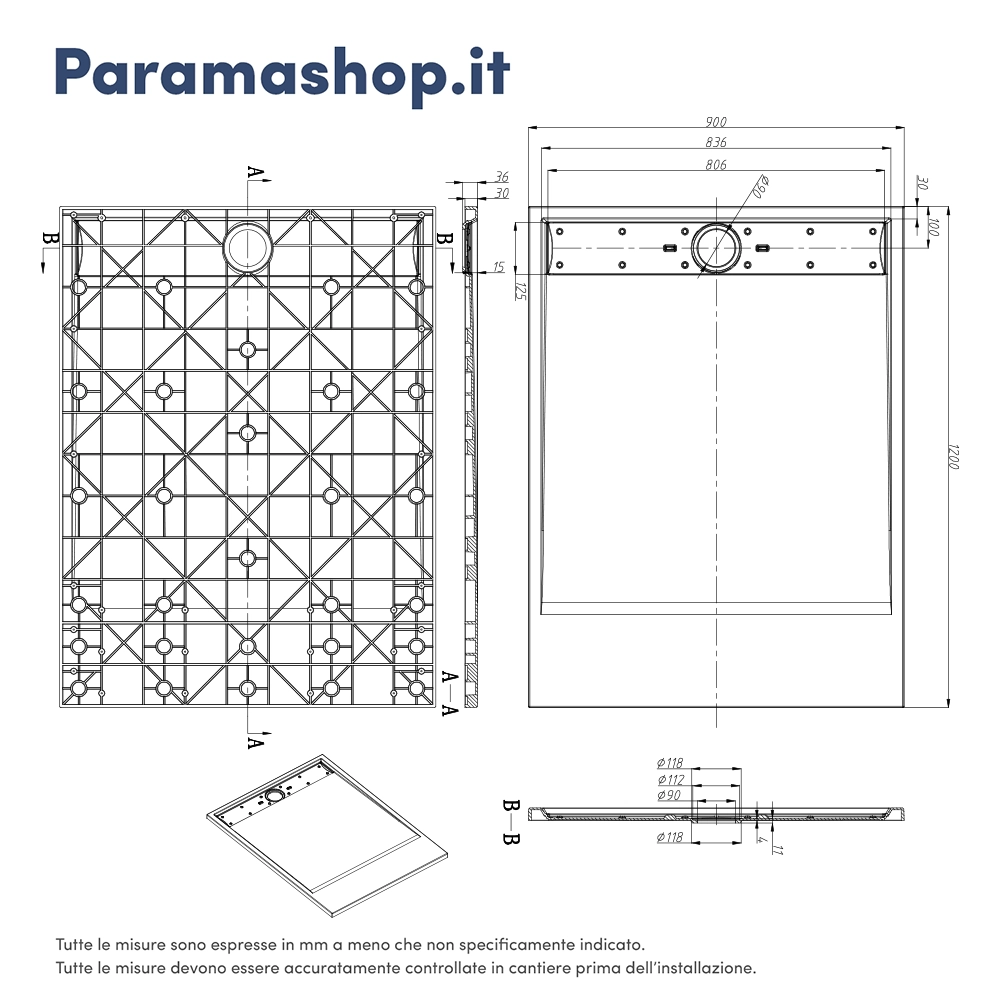 La piletta di scarico non è inclusa nel prezzo ma potrai acquistarla separatamente (codice prodotto: AI01DRA001).
