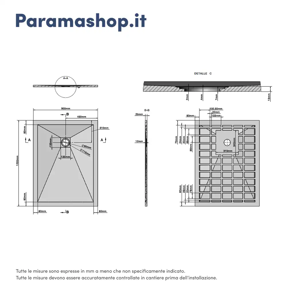 La piletta di scarico non è inclusa ma è acquistabile separatamente sul nostro store (cod. art. AI01DRA001).