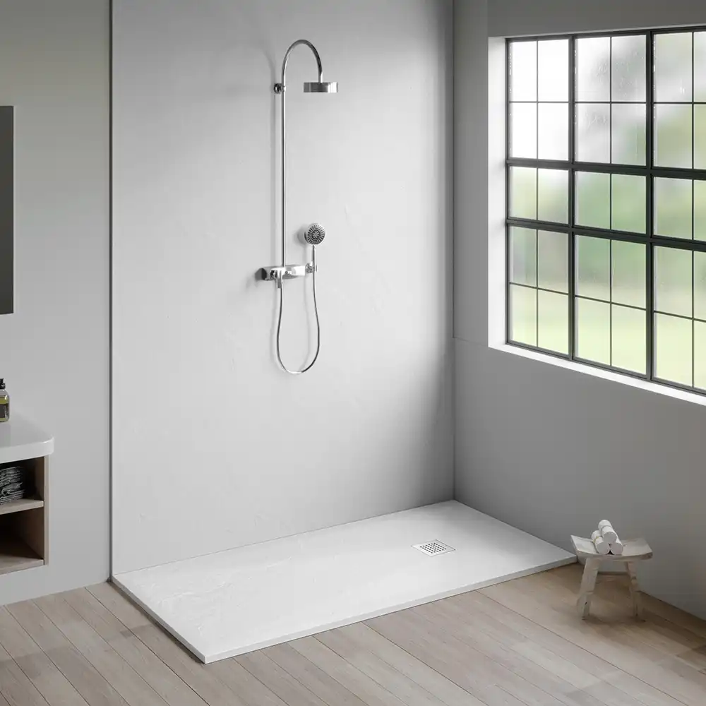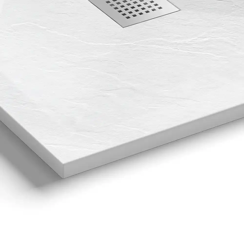 Piatto doccia 90x120cm effetto pietra bianco in marmoresina e gel coat | Messapia