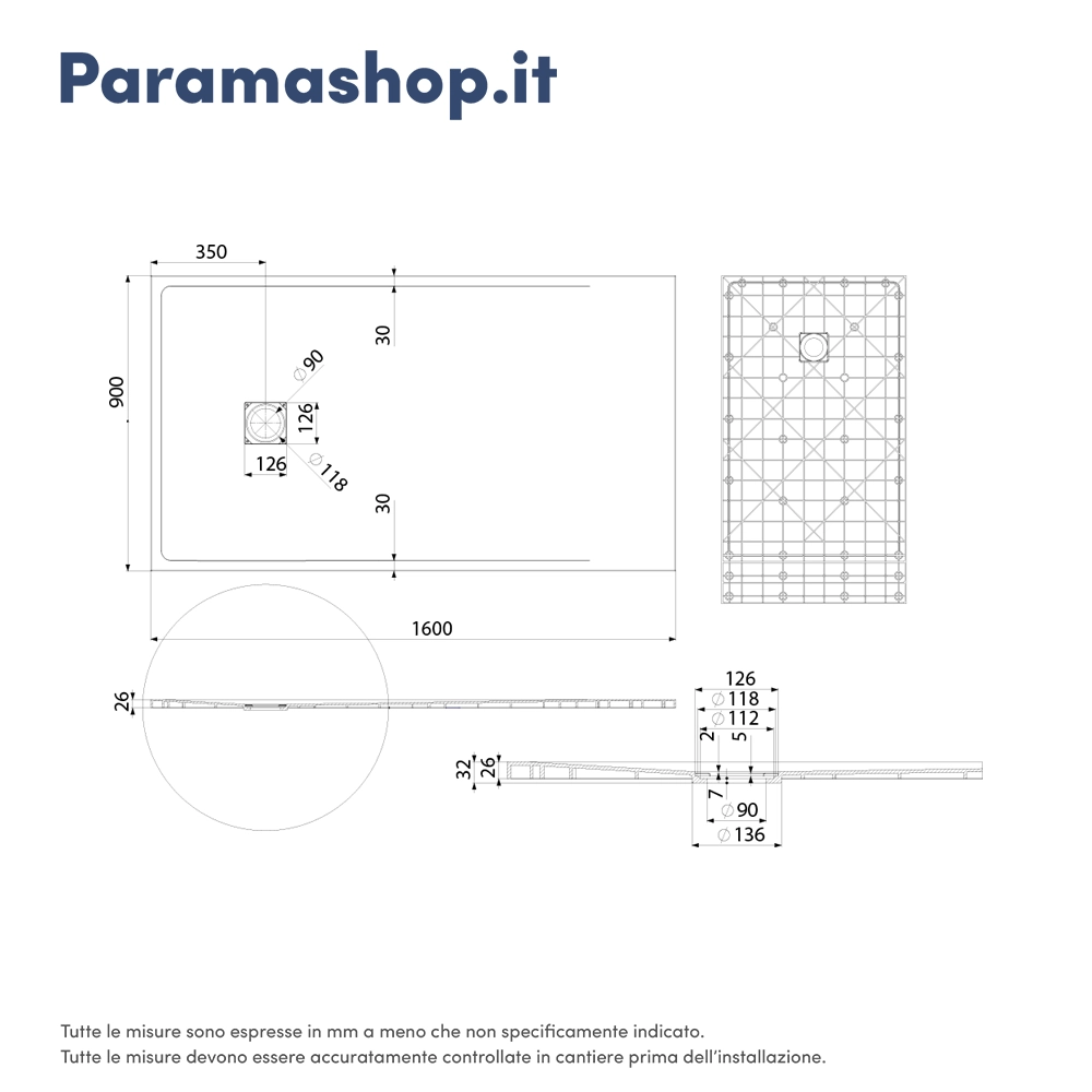 Si prega di notare che la piletta di scarico non è inclusa nella confezione del prodotto ma è acquistabile separatamente nell'apposita sezione dedicata (Cod. Prodotto: AI01DRA002).