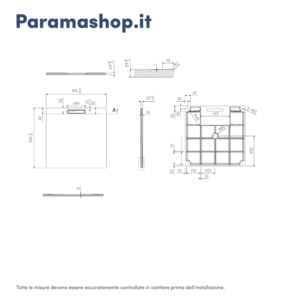 Il piatto doccia Paros è tagliabile, offrendo la possibilità di adattarlo facilmente a diverse dimensioni e forme. Inoltre, è è possibile installarlo in due modi differenti: filopavimento, che crea un effetto elegante e minimalista senza gradini tra il piatto e il pavimento, oppure in appoggio, altrettanto pratica e funzionale, ideale per chi cerca una soluzione più tradizionale.