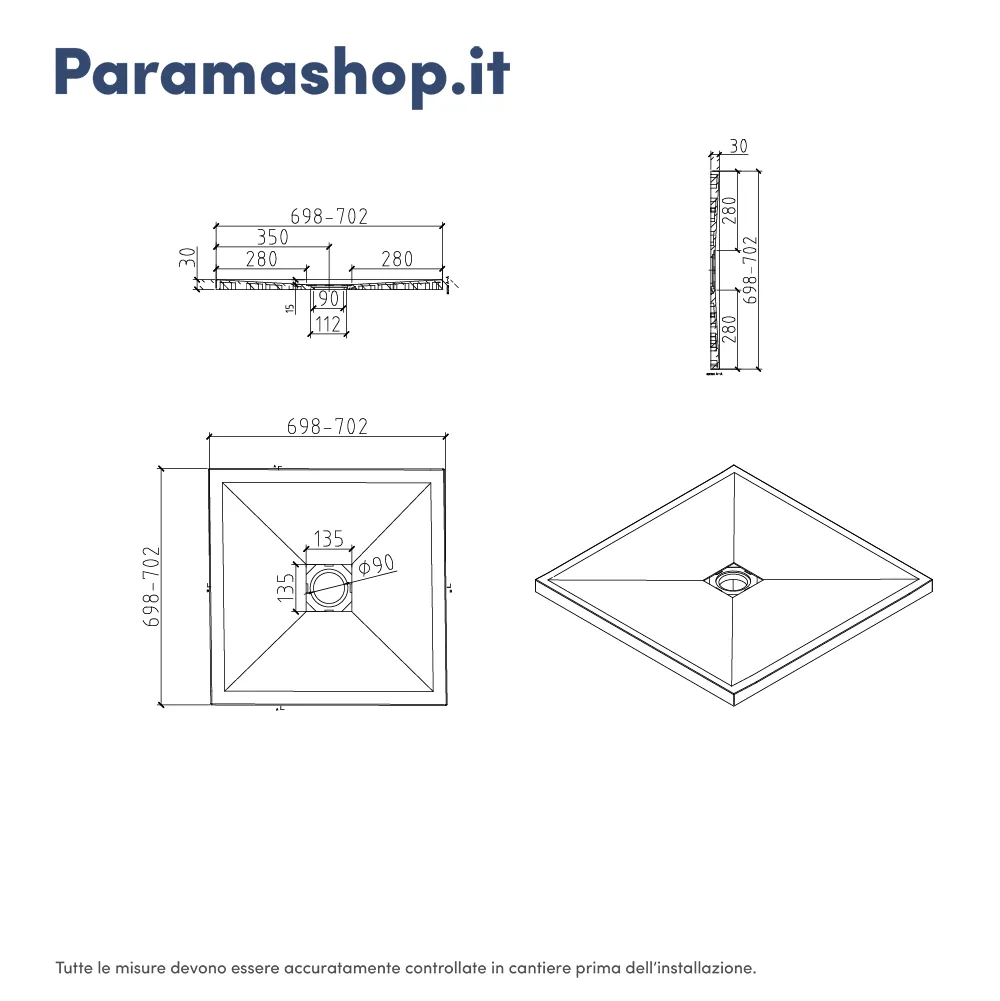 Grazie alla sua superficie antiscivolo, il piatto doccia garantisce la massima sicurezza durante l’utilizzo quotidiano. La sua versatilità è uno dei punti di forza: può essere installato sia a filo pavimento per un effetto moderno e minimal, sia in appoggio. Inoltre, la possibilità di ridurlo su misura lo rende perfetto anche per spazi irregolari o ristrutturazioni personalizzate, assicurando un risultato preciso.