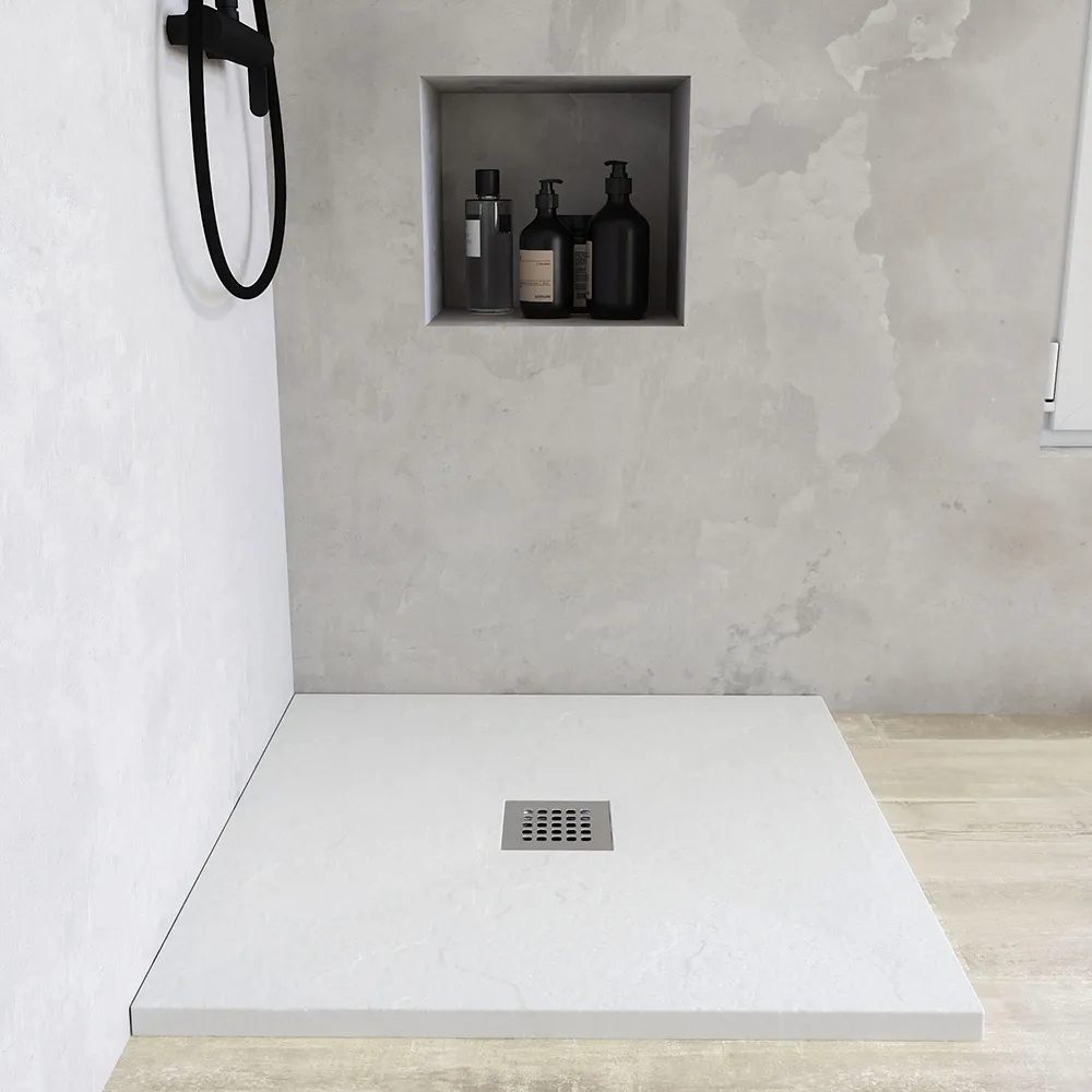 Piatto doccia quadrato 70x70 cm in marmoresina bianco effetto pietra h3 cm | Milos