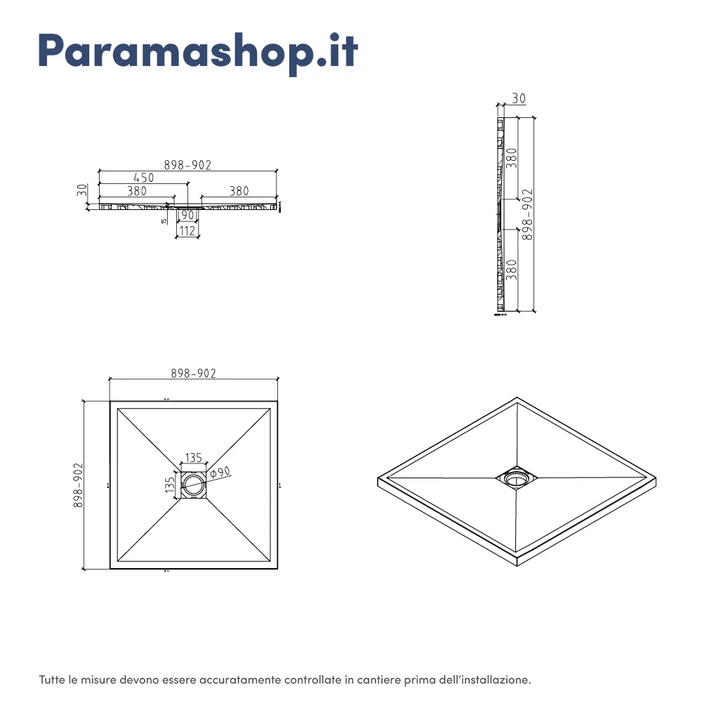 La piletta di scarico non è inclusa, ma è disponibile per l'acquisto separatamente. (Cod. Art. AI01DRA002)