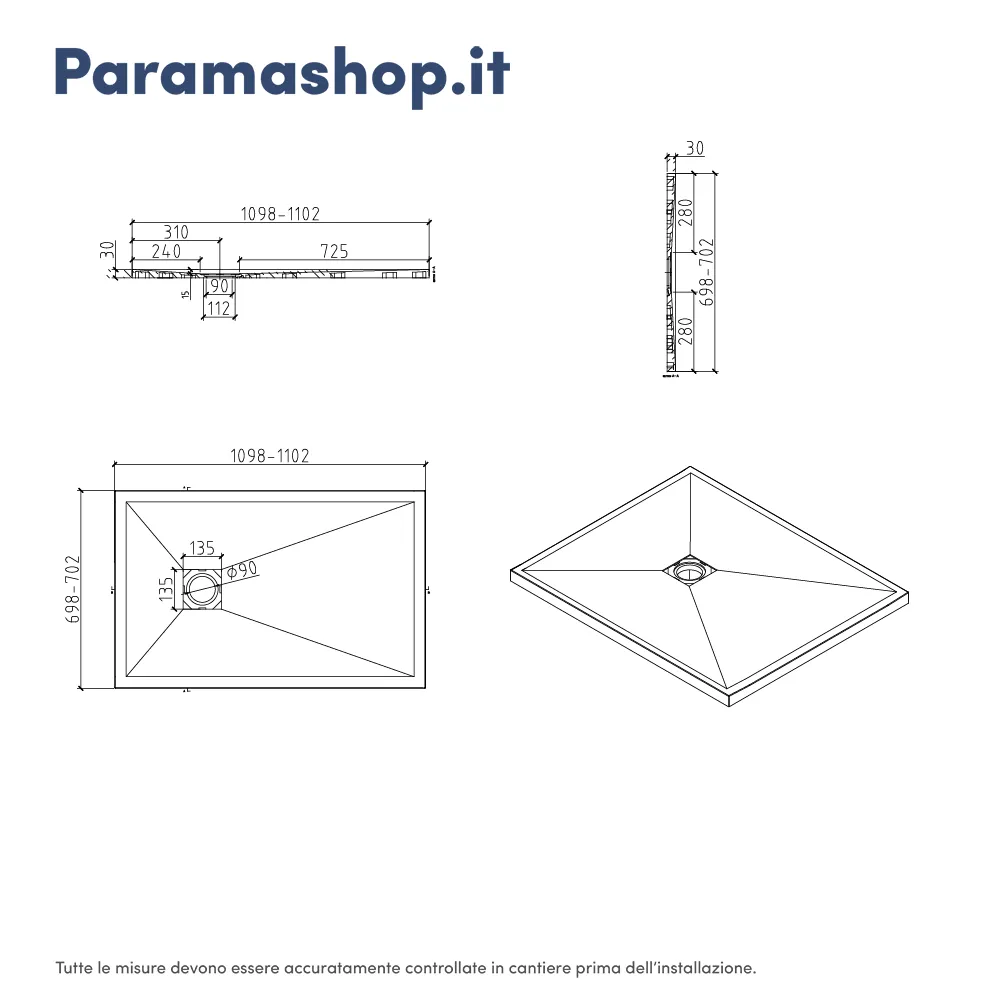 Grazie alla sua superficie antiscivolo, il piatto doccia garantisce la massima sicurezza durante l’utilizzo quotidiano. La sua versatilità è uno dei punti di forza: può essere installato sia a filo pavimento per un effetto moderno e minimal, sia in appoggio. Inoltre, la possibilità di ridurlo su misura lo rende perfetto anche per spazi irregolari o ristrutturazioni personalizzate, assicurando un risultato preciso.