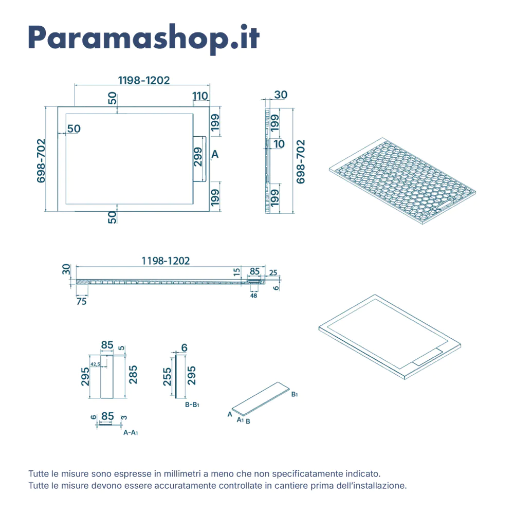 Con un’altezza di soli 3 cm, il modello Delos presenta un design ultrapiatto che si integra armoniosamente con il pavimento, donando una sensazione di continuità e spaziosità all’ambiente. Può essere installato sia filopavimento per un effetto moderno e minimale, sia in appoggio per un montaggio più tradizionale e pratico.
