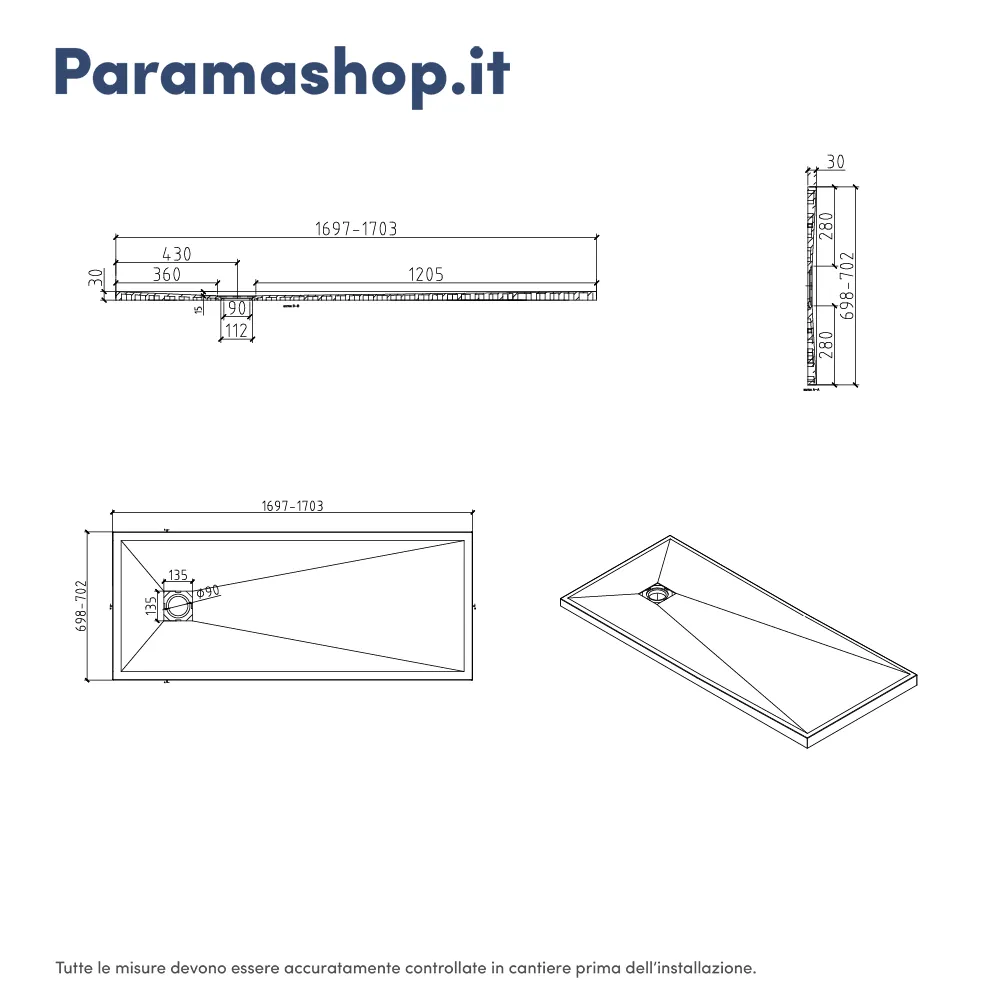 Grazie alla sua superficie antiscivolo, il piatto doccia garantisce la massima sicurezza durante l’utilizzo quotidiano. La sua versatilità è uno dei punti di forza: può essere installato sia a filo pavimento per un effetto moderno e minimal, sia in appoggio. Inoltre, la possibilità di ridurlo su misura lo rende perfetto anche per spazi irregolari o ristrutturazioni personalizzate, assicurando un risultato preciso.
