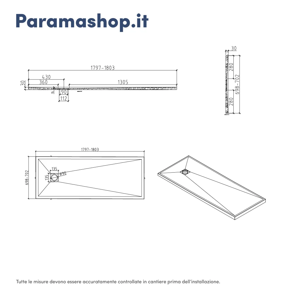 Grazie alla sua superficie antiscivolo, il piatto doccia garantisce la massima sicurezza durante l’utilizzo quotidiano. La sua versatilità è uno dei punti di forza: può essere installato sia a filo pavimento per un effetto moderno e minimal, sia in appoggio. Inoltre, la possibilità di ridurlo su misura lo rende perfetto anche per spazi irregolari o ristrutturazioni personalizzate, assicurando un risultato preciso.