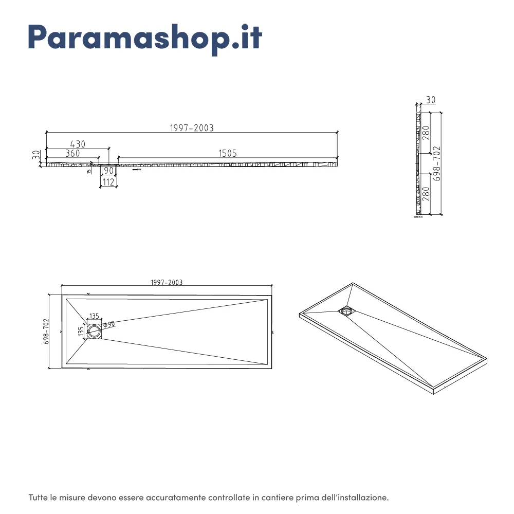 Grazie alla sua superficie antiscivolo, il piatto doccia garantisce la massima sicurezza durante l’utilizzo quotidiano. La sua versatilità è uno dei punti di forza: può essere installato sia a filo pavimento per un effetto moderno e minimal, sia in appoggio. Inoltre, la possibilità di ridurlo su misura lo rende perfetto anche per spazi irregolari o ristrutturazioni personalizzate, assicurando un risultato preciso.