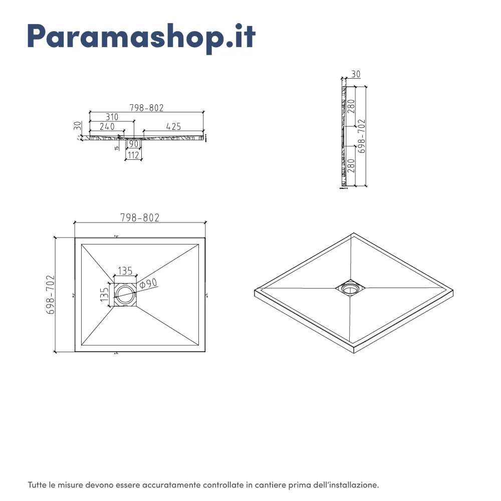 Grazie alla sua superficie antiscivolo, il piatto doccia garantisce la massima sicurezza durante l’utilizzo quotidiano. La sua versatilità è uno dei punti di forza: può essere installato sia a filo pavimento per un effetto moderno e minimal, sia in appoggio. Inoltre, la possibilità di ridurlo su misura lo rende perfetto anche per spazi irregolari o ristrutturazioni personalizzate, assicurando un risultato preciso.