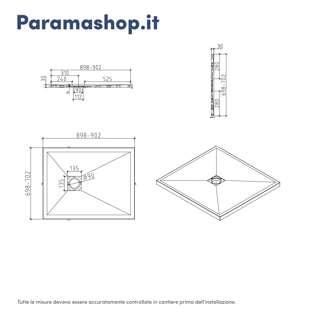 Grazie alla sua superficie antiscivolo, il piatto doccia garantisce la massima sicurezza durante l’utilizzo quotidiano. La sua versatilità è uno dei punti di forza: può essere installato sia a filo pavimento per un effetto moderno e minimal, sia in appoggio. Inoltre, la possibilità di ridurlo su misura lo rende perfetto anche per spazi irregolari o ristrutturazioni personalizzate, assicurando un risultato preciso.